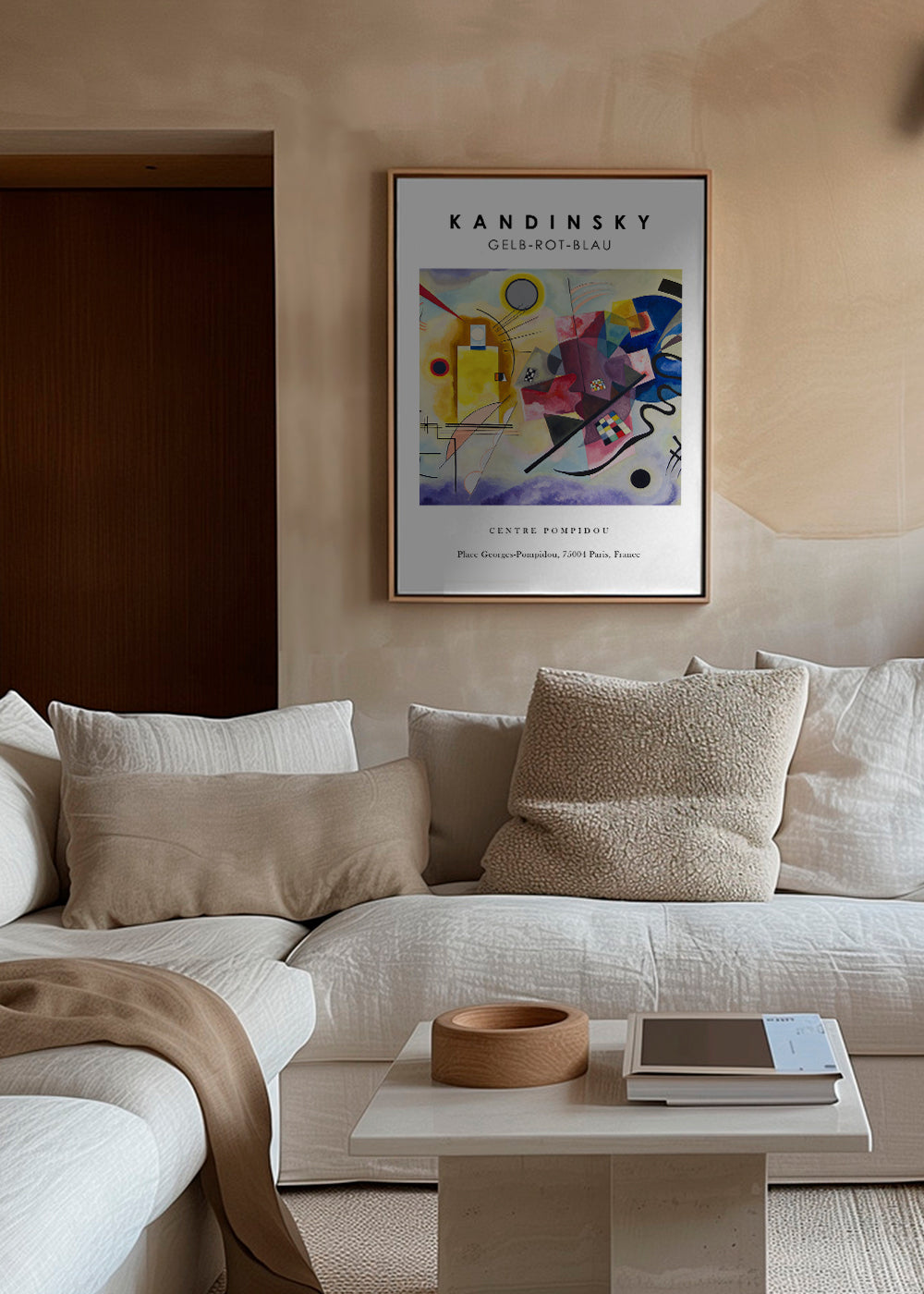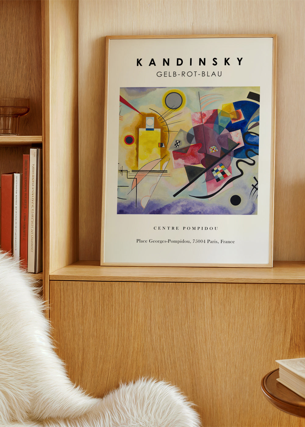 Poster abstrakt Gelb-Rot-Blau Exhibition White