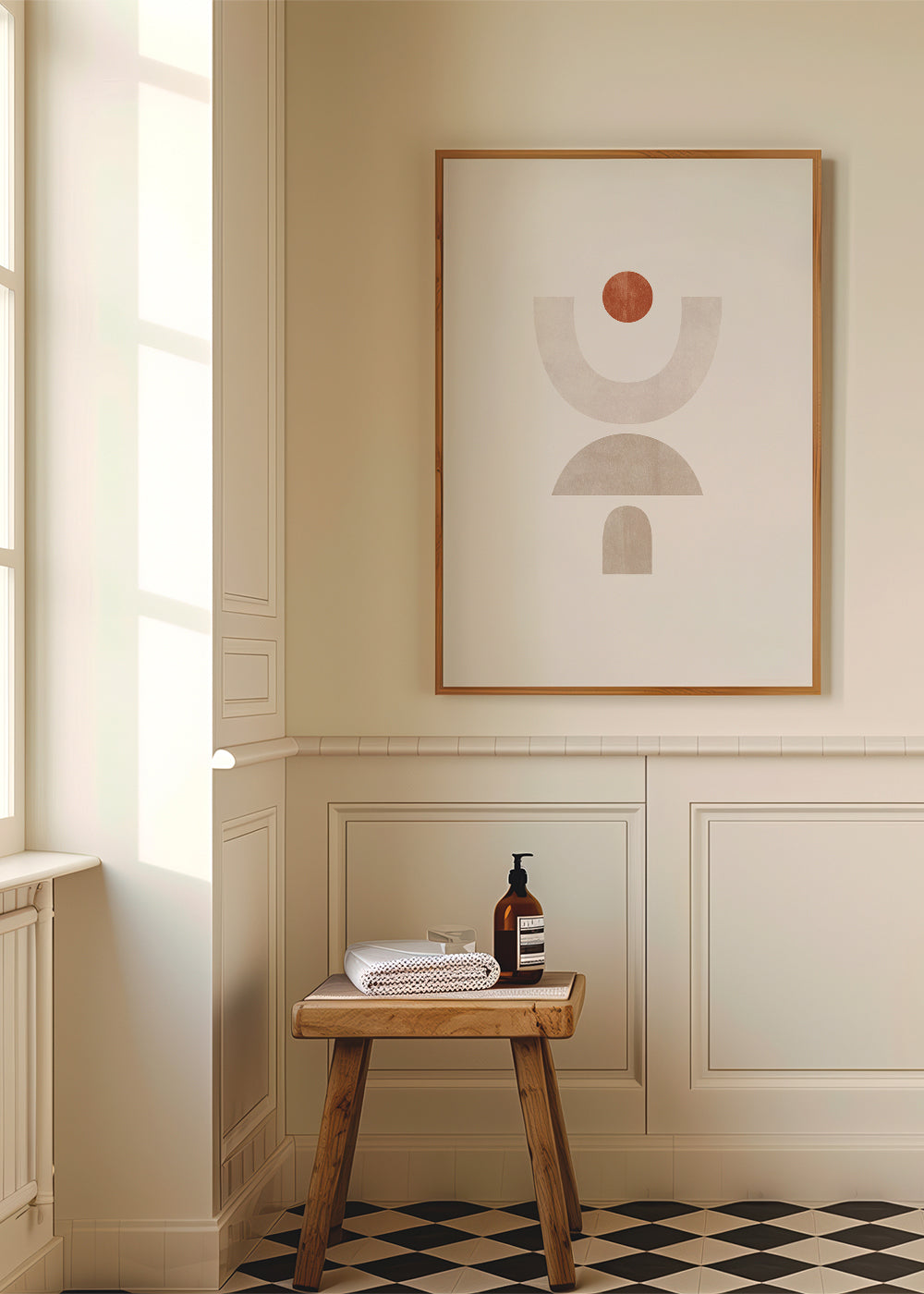 Dieses Poster aus der Kollektion von geometrische bilder, von Kookie Pixel, Farbtönen Rot, und mit Ausrichtung Vertikal. Abstrakte und geometrische Formen erzeugen ein verspieltes, kreatives Ambiente. Eine leere Wand ist wie eine unbemalte Leinwand.