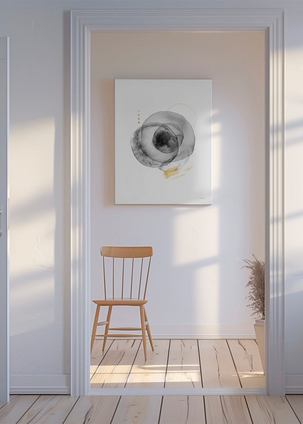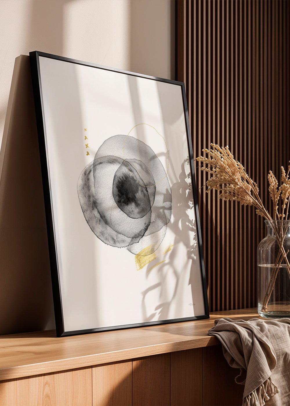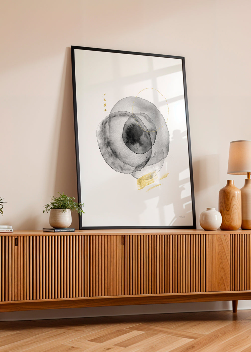 Ein Kunstwerk aus der Kollektion geometrische bilder, designed von Fabiana Silveira, mit Farben Grau, und im Format Vertikal. Der Kunstdruck mit abstrakten Formen lässt sich hervorragend mit geometrischen Formen und abstrakter Kunst kombinieren. Lasse dich von Kunst verzaubern.