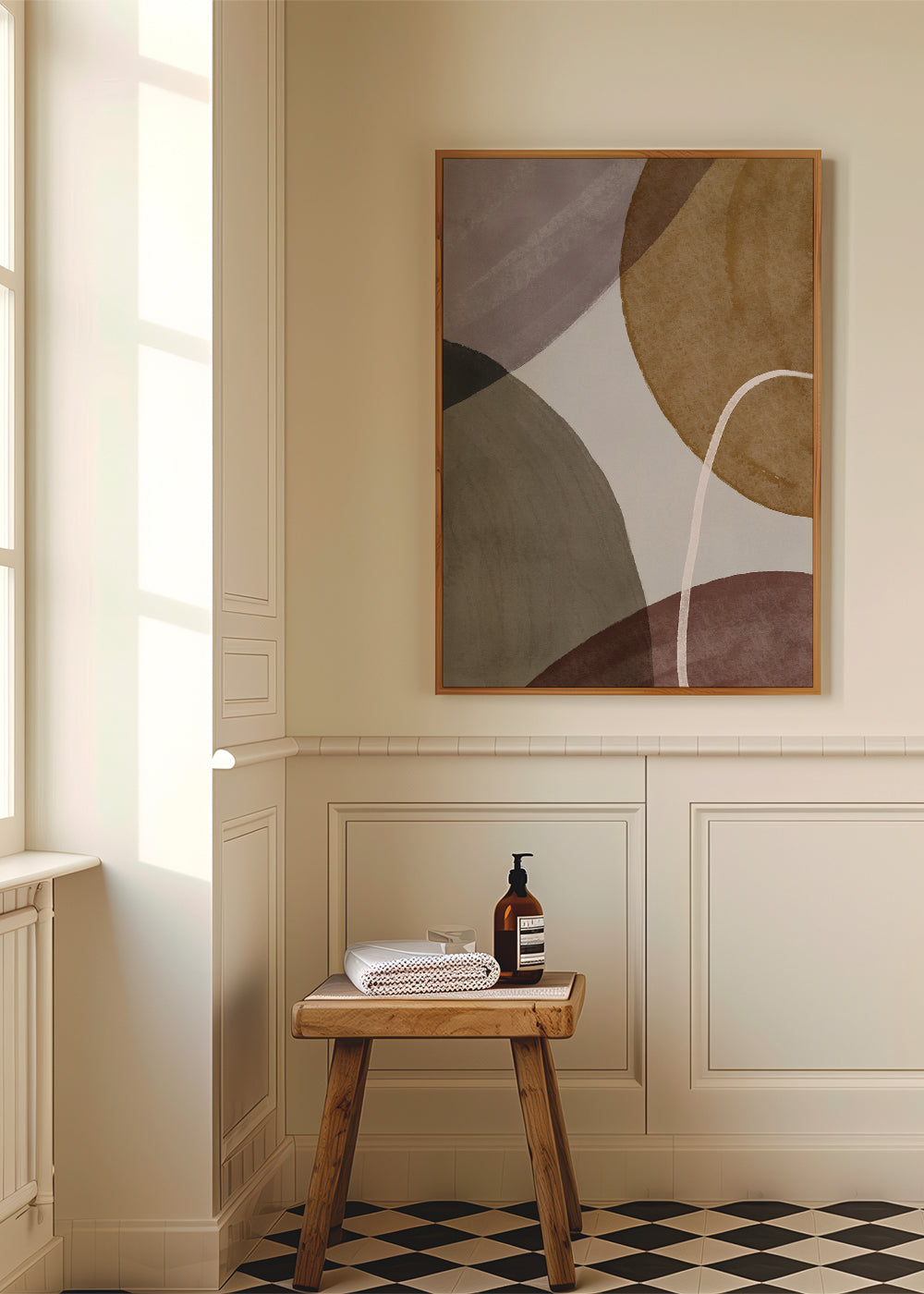 Wenn Sie die Passepartout-Option wählen, fügen wir die weiße matte Platte dem Rahmen hinzu und reduzieren das Design der Arbeit. Wählen Sie beispielsweise ein Druckformat 50x70 cm, mit eichenfarbenem Rahmen und Passepartout, reduzieren wir das Design des Druckes auf das bisherige Format (40x50cm). So passt es sich perfekt an das Innenfenster des Passepartouts an.