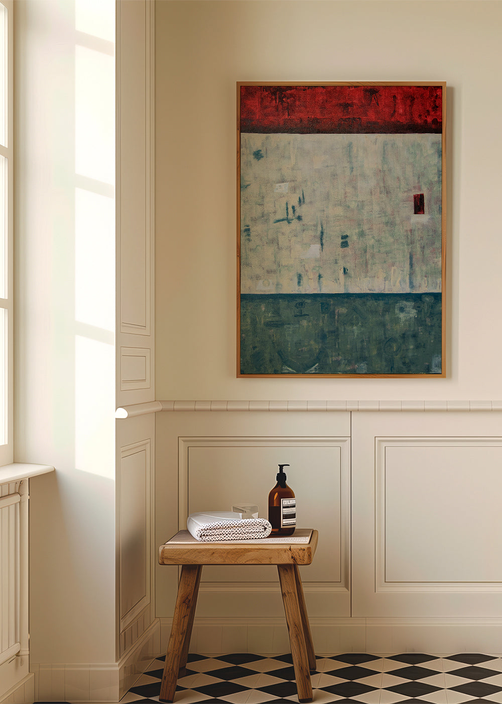 Ein Poster aus unserer Kunstauswahl poster abstrakt, gehört zur Kollektion Elena Camacho Art, mit einem Hauch von rot, und geeignet für Bildpositionen vertikal. Abstrakte Wandbilder sind perfekt für eine einzigartige und kreative Inneneinrichtung. Lasse dich von Kunst verzaubern.