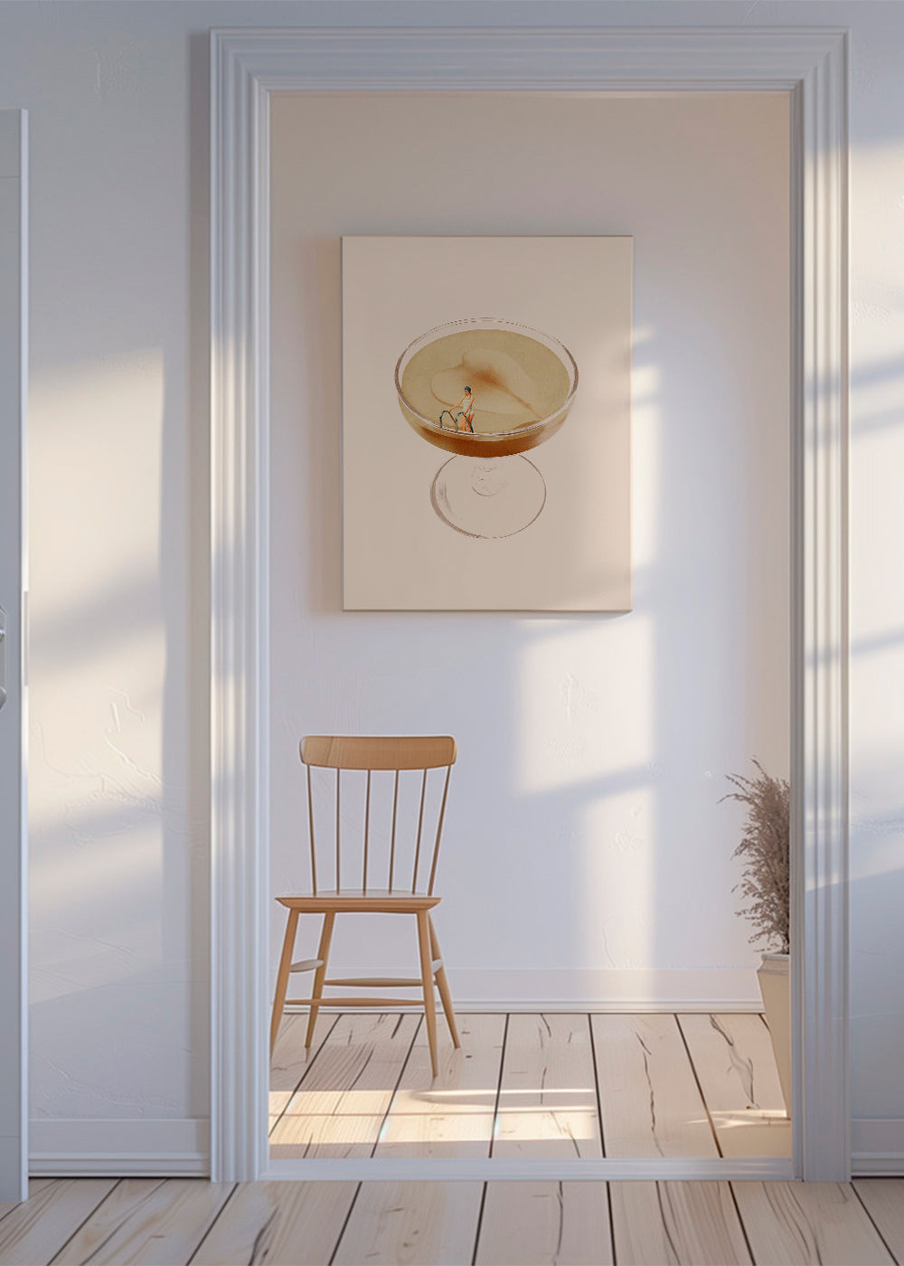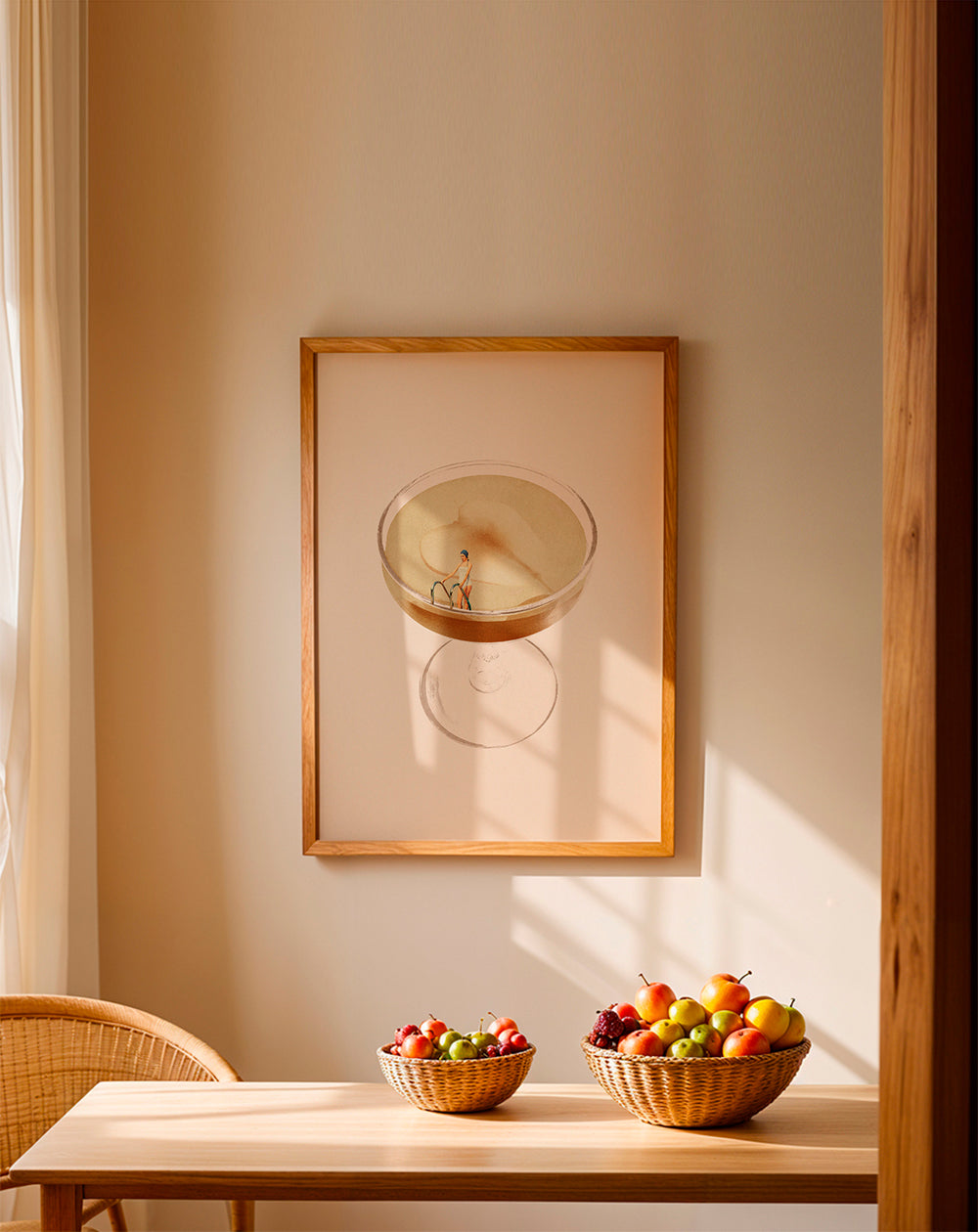 Wenn Sie die Passepartout-Option wählen, fügen wir die weiße matte Platte dem Rahmen hinzu und reduzieren das Design der Arbeit. Wählen Sie beispielsweise ein Druckformat 50x70 cm, mit eichenfarbenem Rahmen und Passepartout, reduzieren wir das Design des Druckes auf das bisherige Format (40x50cm). So passt es sich perfekt an das Innenfenster des Passepartouts an.
