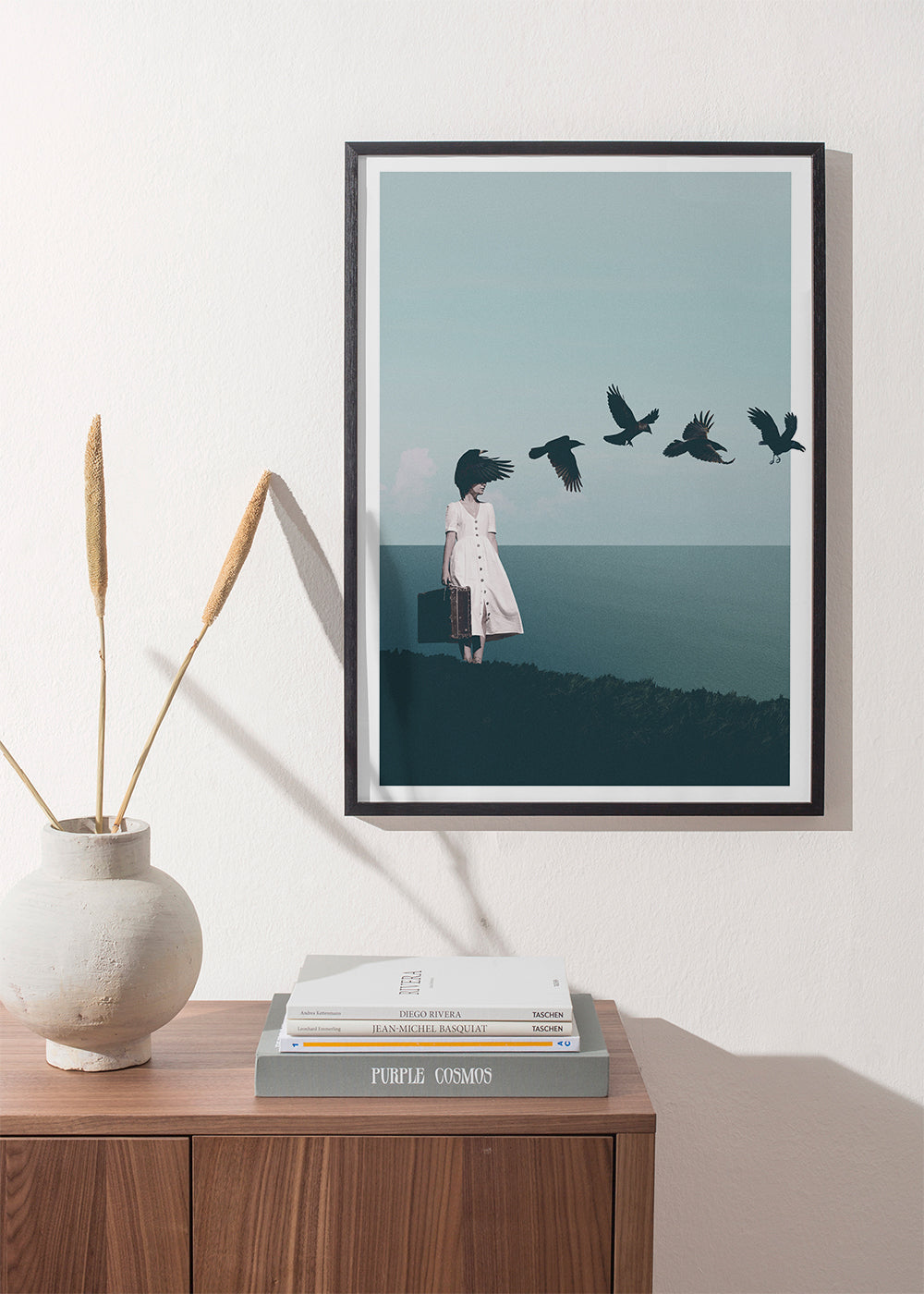 Wenn Sie einen unserer Drucke mit einem der von uns angebotenen Rahmen kombinieren, erhalten Sie die Drucke gerahmt und fertig zum Aufhängen. Falls Sie den Druck und den Rahmen separat kaufen oder Ihre eigenen Drucke hinzufügen möchten, öffnen Sie die hinteren Enden, entfernen Sie die Abdeckung und legen Sie Ihr Blatt bei. Ganz einfach!