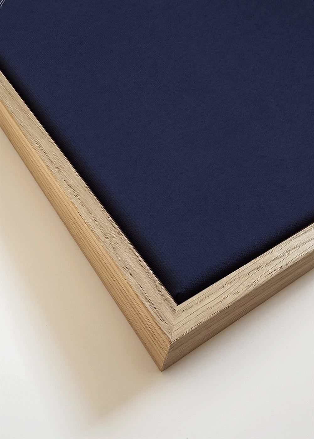 Alle unsere Rahmen werden in Spanien hergestellt. Die weißen, schwarzen und Eichenrahmen sind aus Ayous-Holz gefertigt, und die Eichenrahmen sind mit Eiche furniert, während die metallischen Rahmen aus Aluminium sind.