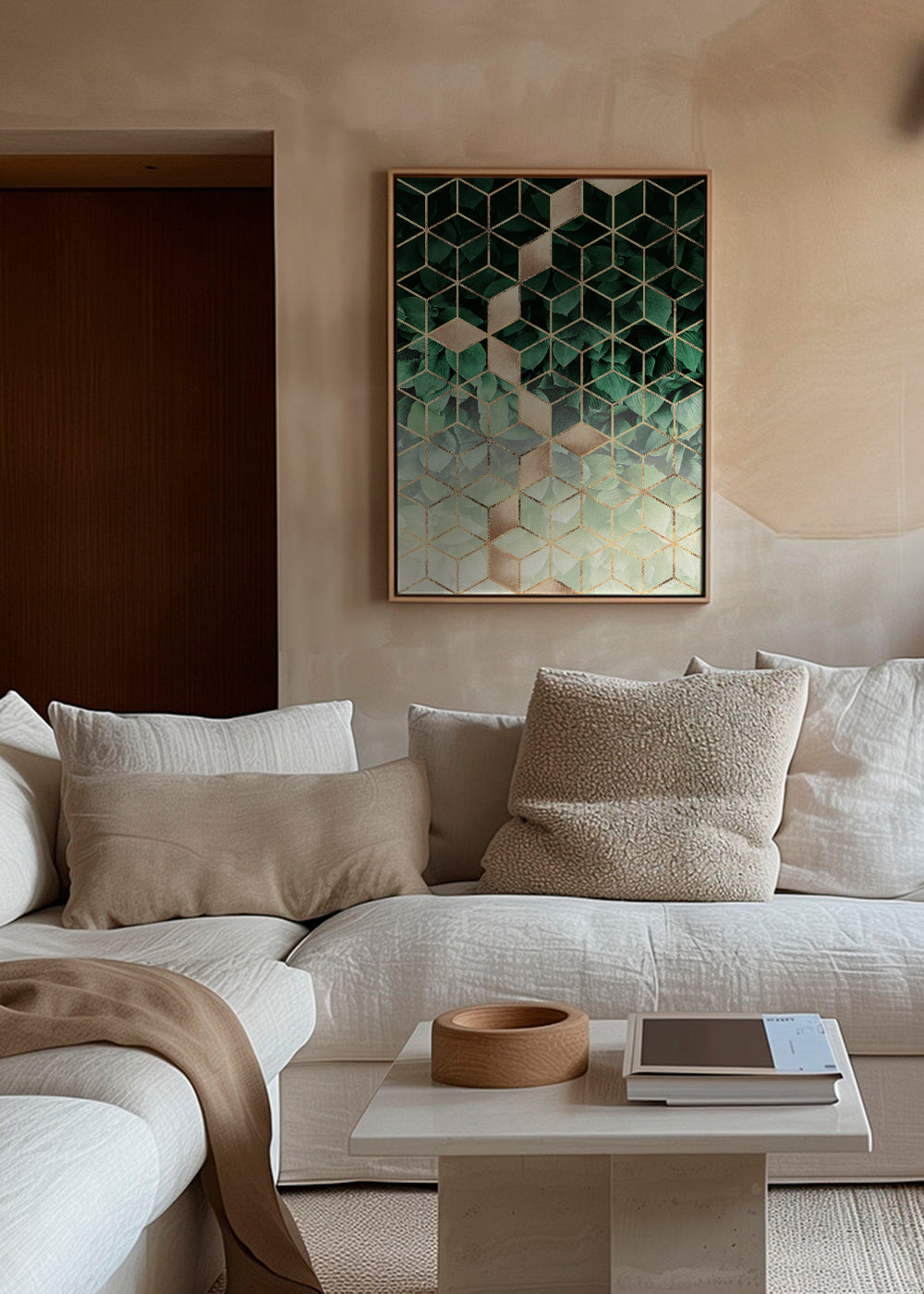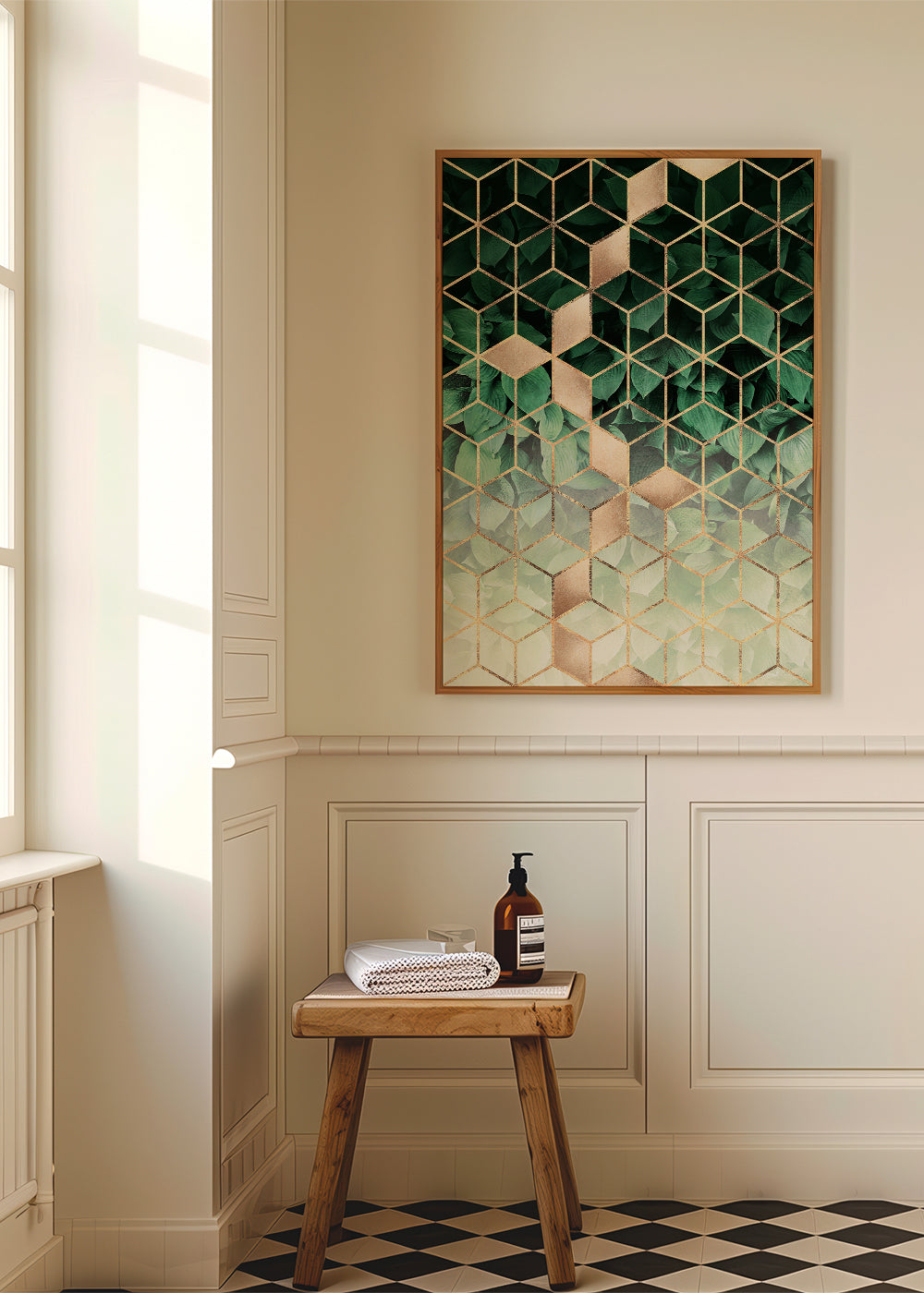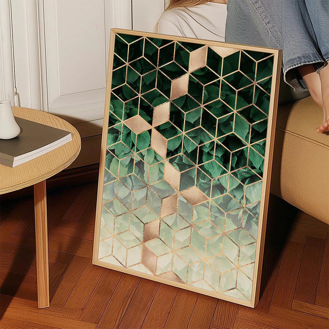 Schönes Poster aus unserer Bilderauswahl muster-bilder, geschaffen von Elisabeth Fredriksson, mit einem Hauch von Grün, und Bildorientierung Vertikal. Abstrakte und geometrische Formen erzeugen ein verspieltes, kreatives Ambiente. Richte deine Wohnung mit Kunst ein.