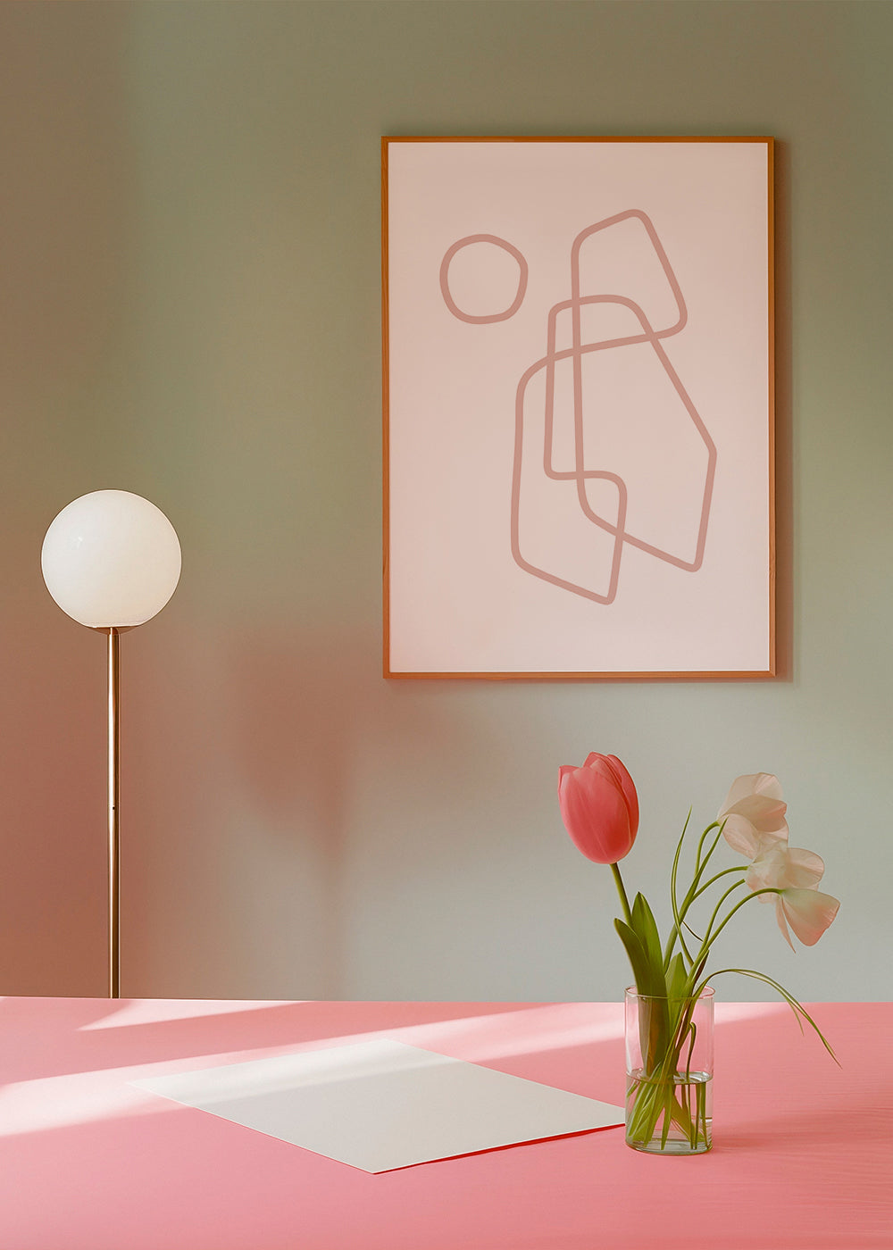 Ein Kunstdruck aus unserer Kunstauswahl line-art-bilder, aus der Kollektion des Künstlers Nouveau Prints, Farbtönen Rosa, und ideal für die Bildposition Vertikal. Der Kunstdruck mit abstrakten Formen lässt sich hervorragend mit geometrischen Formen und abstrakter Kunst kombinieren. Verschönere deine Inneneinrichtung mit Kunst.