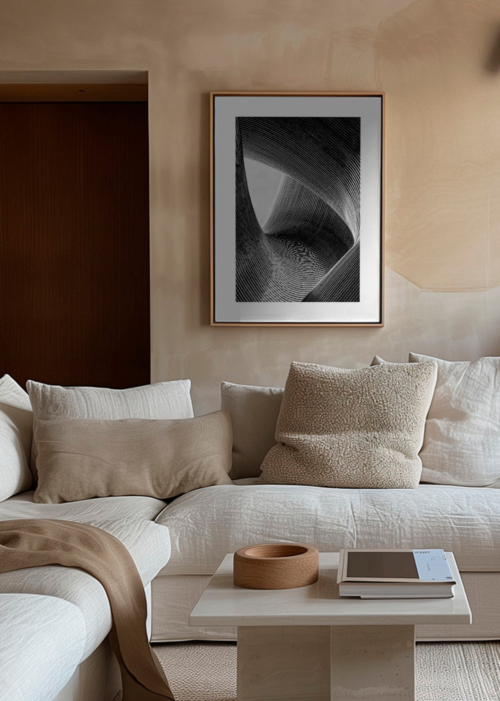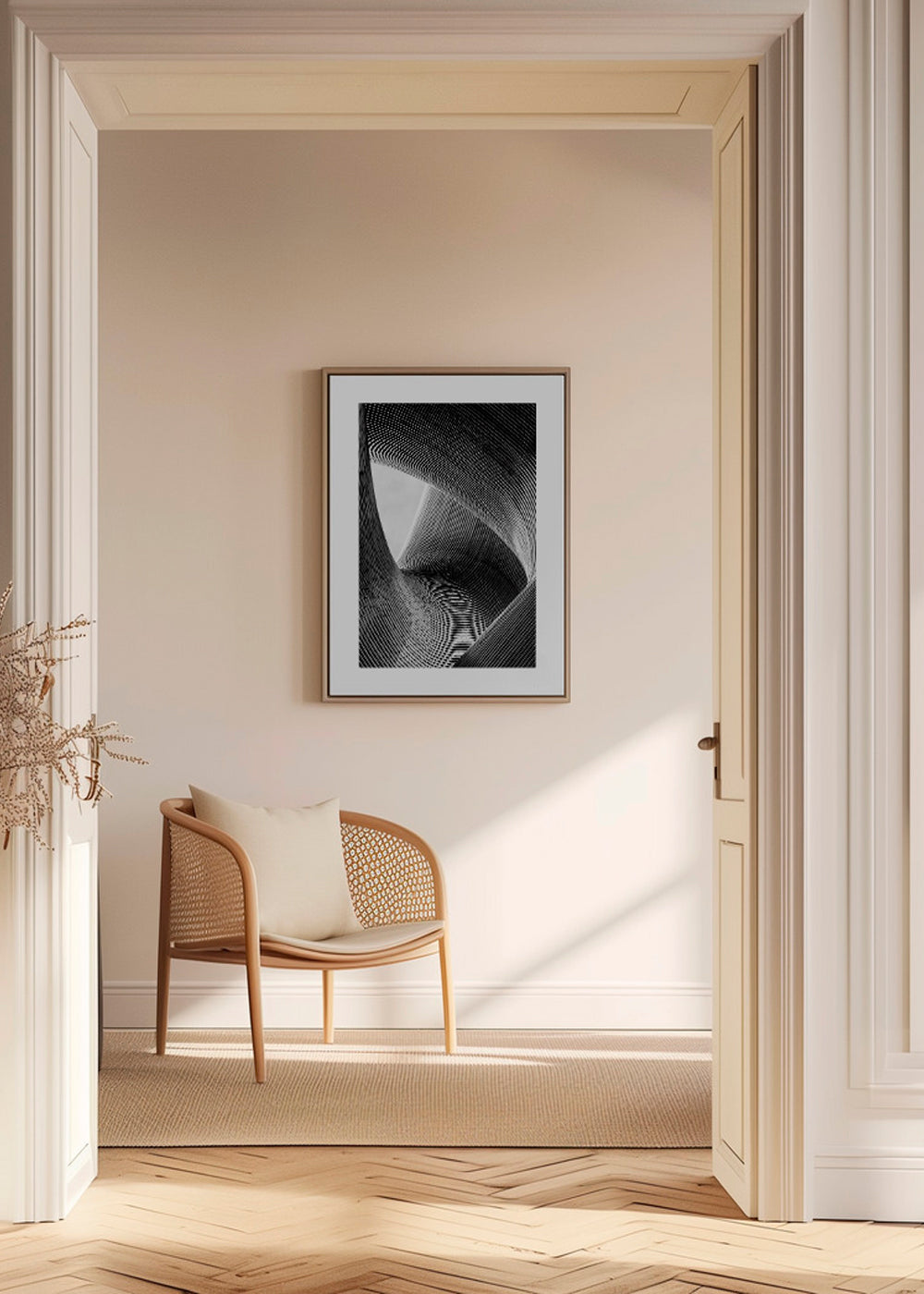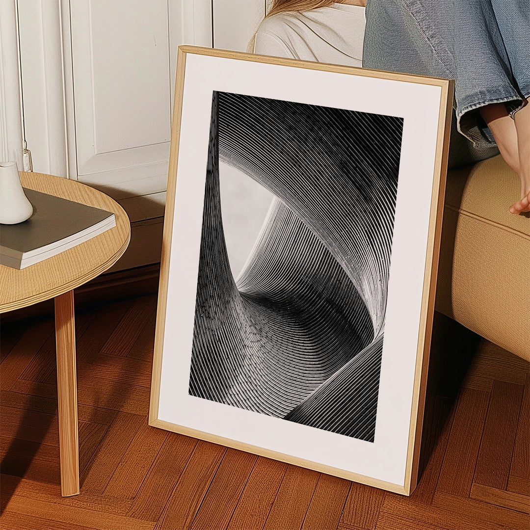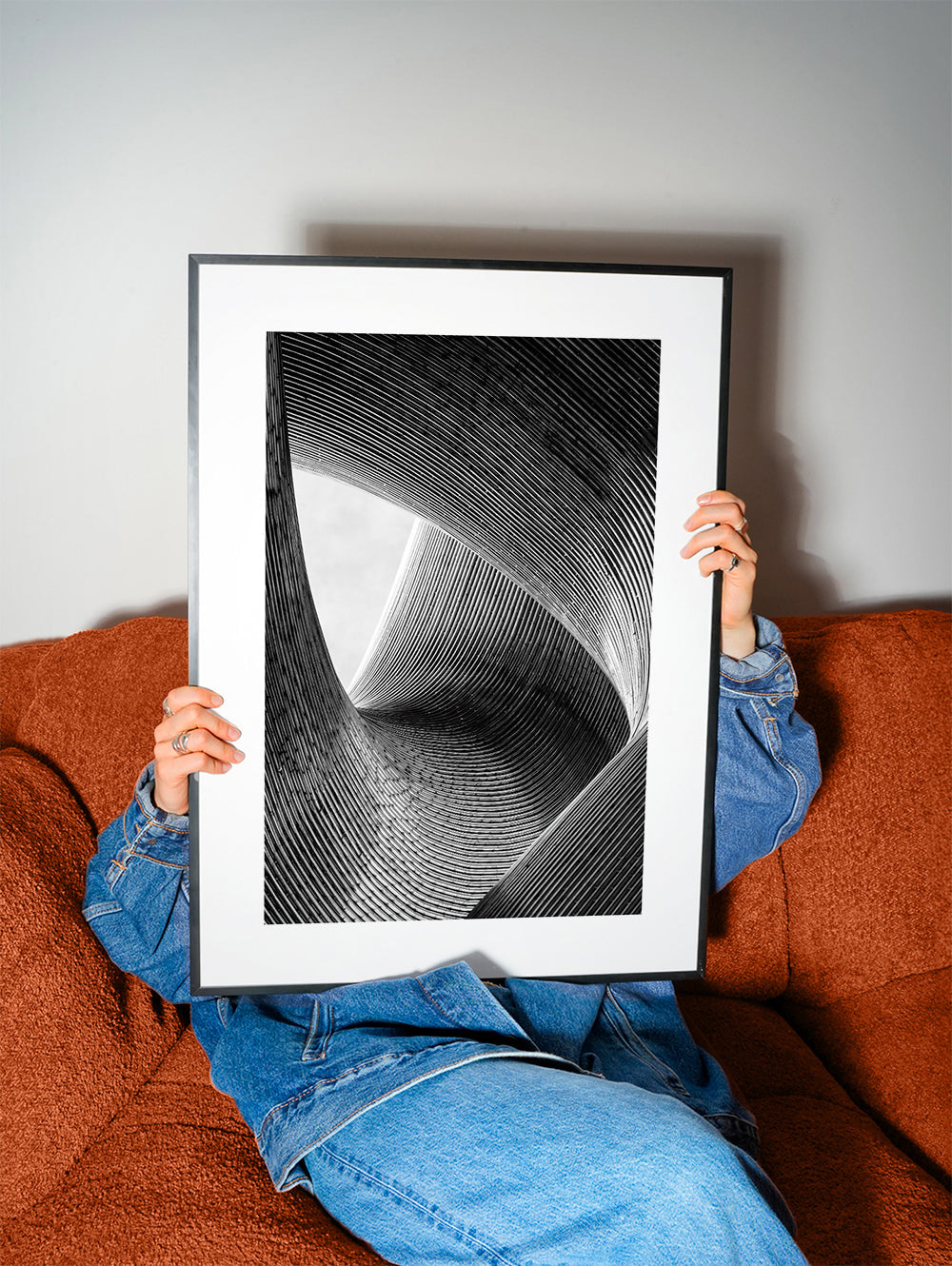 Schönes Kunstwerk aus der Kollektion von geometrische bilder, des Kreativschöpfers 1x, mit Pigmenten Schwarz, und für die Bildpositionen Vertikal. Der Kunstdruck mit abstrakten Formen lässt sich hervorragend mit geometrischen Formen und abstrakter Kunst kombinieren. Eine Wand mit Bildern kann den ganzen Raum verändern. Wandbild mit weißem Rand, um das Bild hervorzuheben.