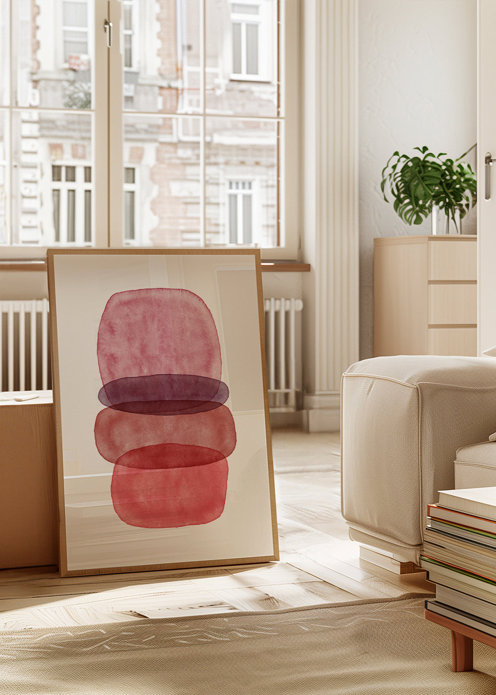 Schönes Kunstwerk aus unserer handverlesene Auswahl nach geometrische bilder, aus der Kollektion des Künstlers Nouveau Prints, mit Nuancen rot, und ideal für die Bildposition vertikal. Der Kunstdruck mit abstrakten Formen lässt sich hervorragend mit geometrischen Formen und abstrakter Kunst kombinieren. Unverfälschte Kunst und authentisches Design.