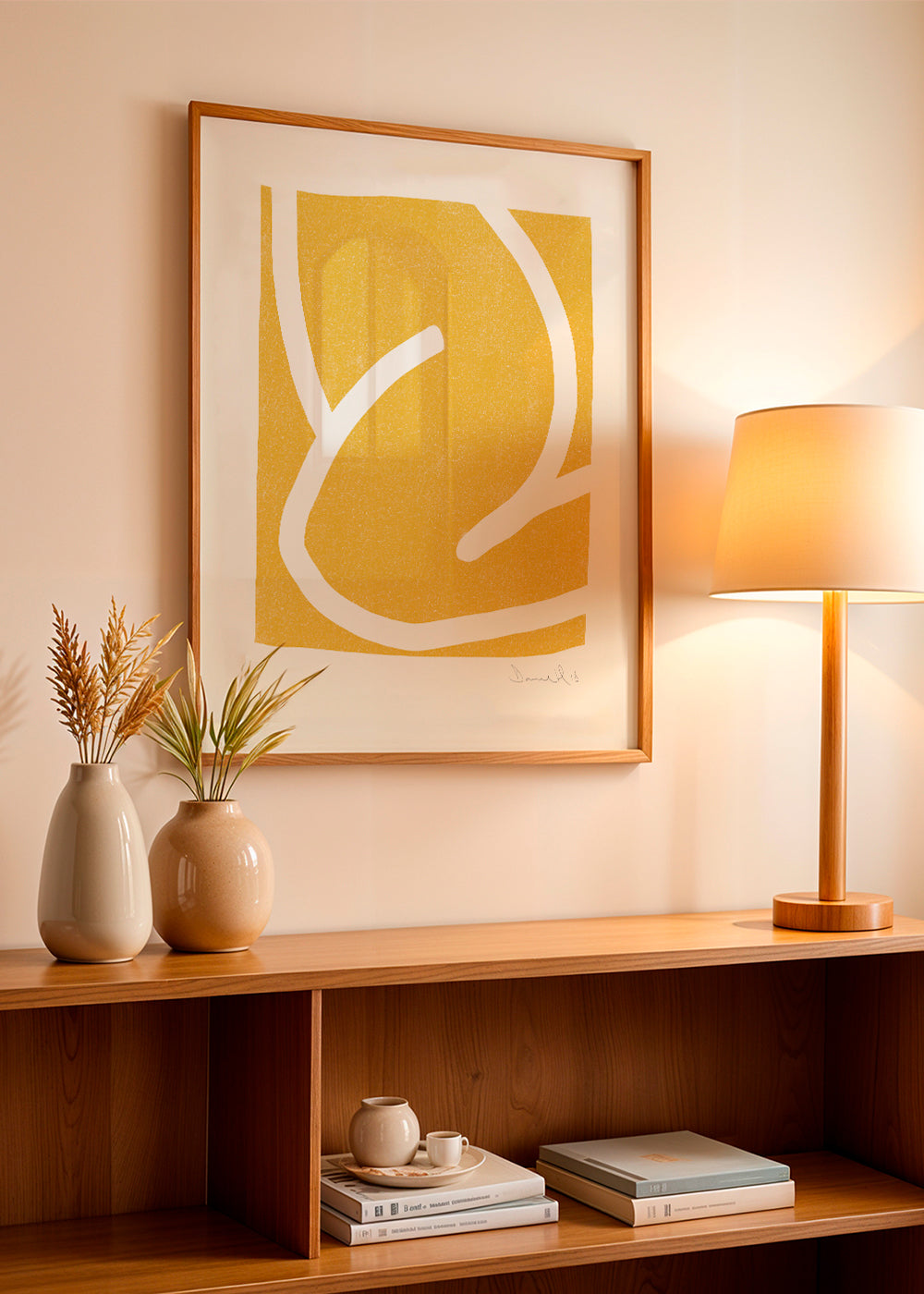 Schöner Kunstdruck aus unserer Kunstauswahl poster abstrakt, aus der Kollektion des Künstlers 1x, mit Nuancen gelb, und für die Bildpositionen vertikal. Abstrakte Wandbilder sind perfekt für eine einzigartige und kreative Inneneinrichtung. Die perfekte Kombination aus Originalität und Design.