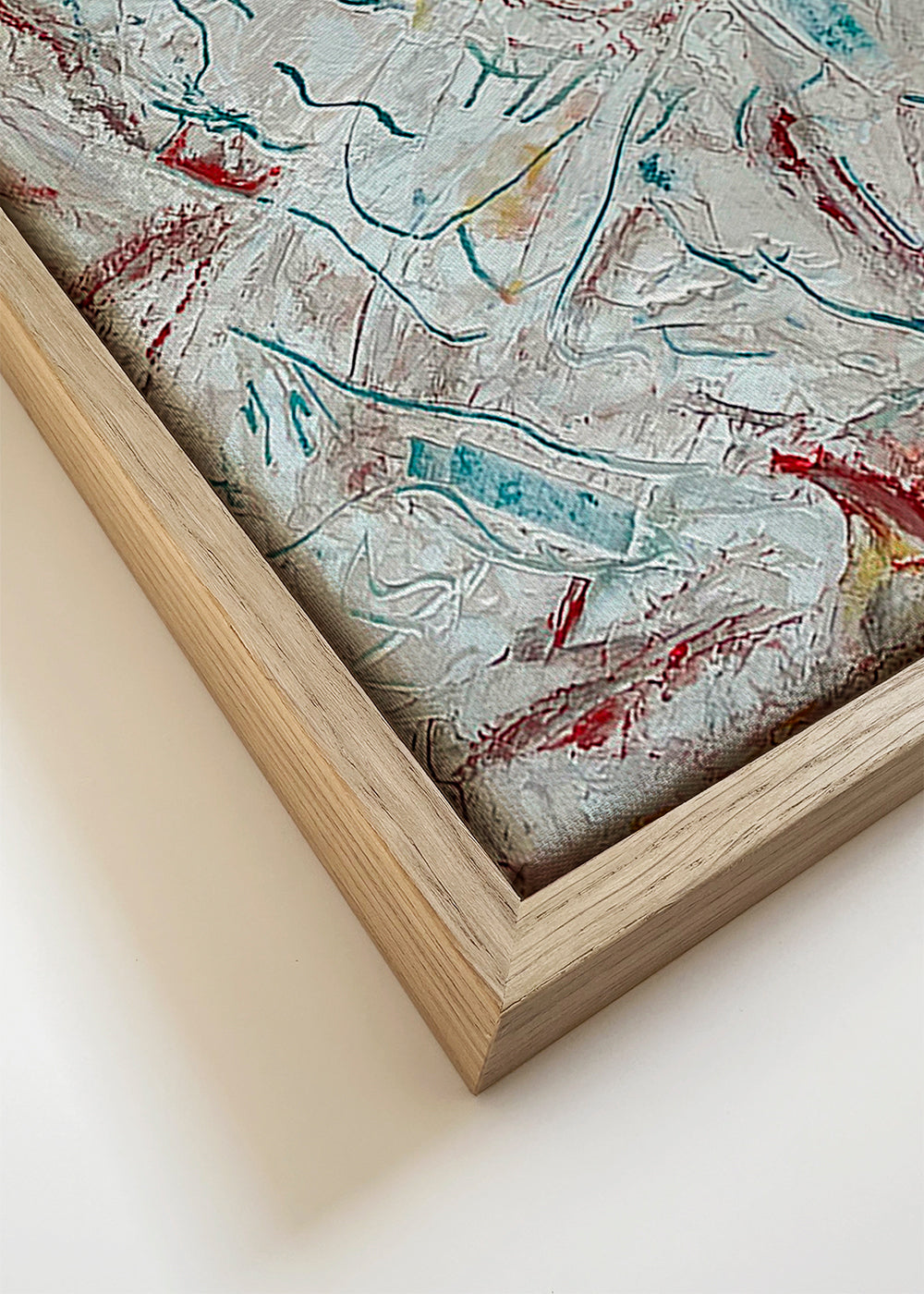 Alle unsere Rahmen werden in Spanien hergestellt. Die weißen, schwarzen und Eichenrahmen sind aus Ayous-Holz gefertigt, und die Eichenrahmen sind mit Eiche furniert, während die metallischen Rahmen aus Aluminium sind.