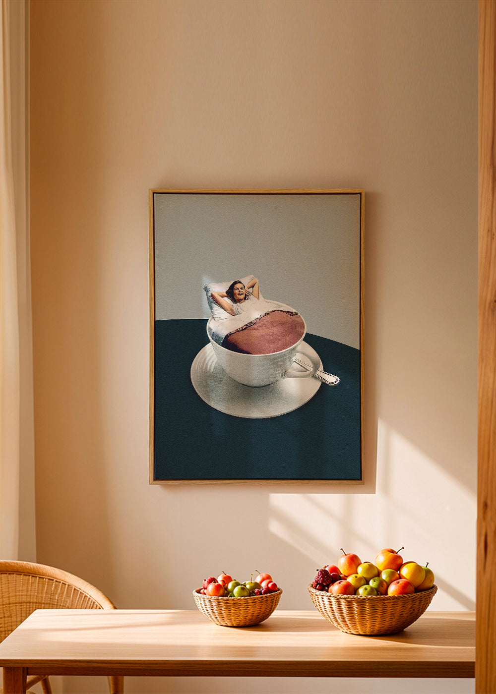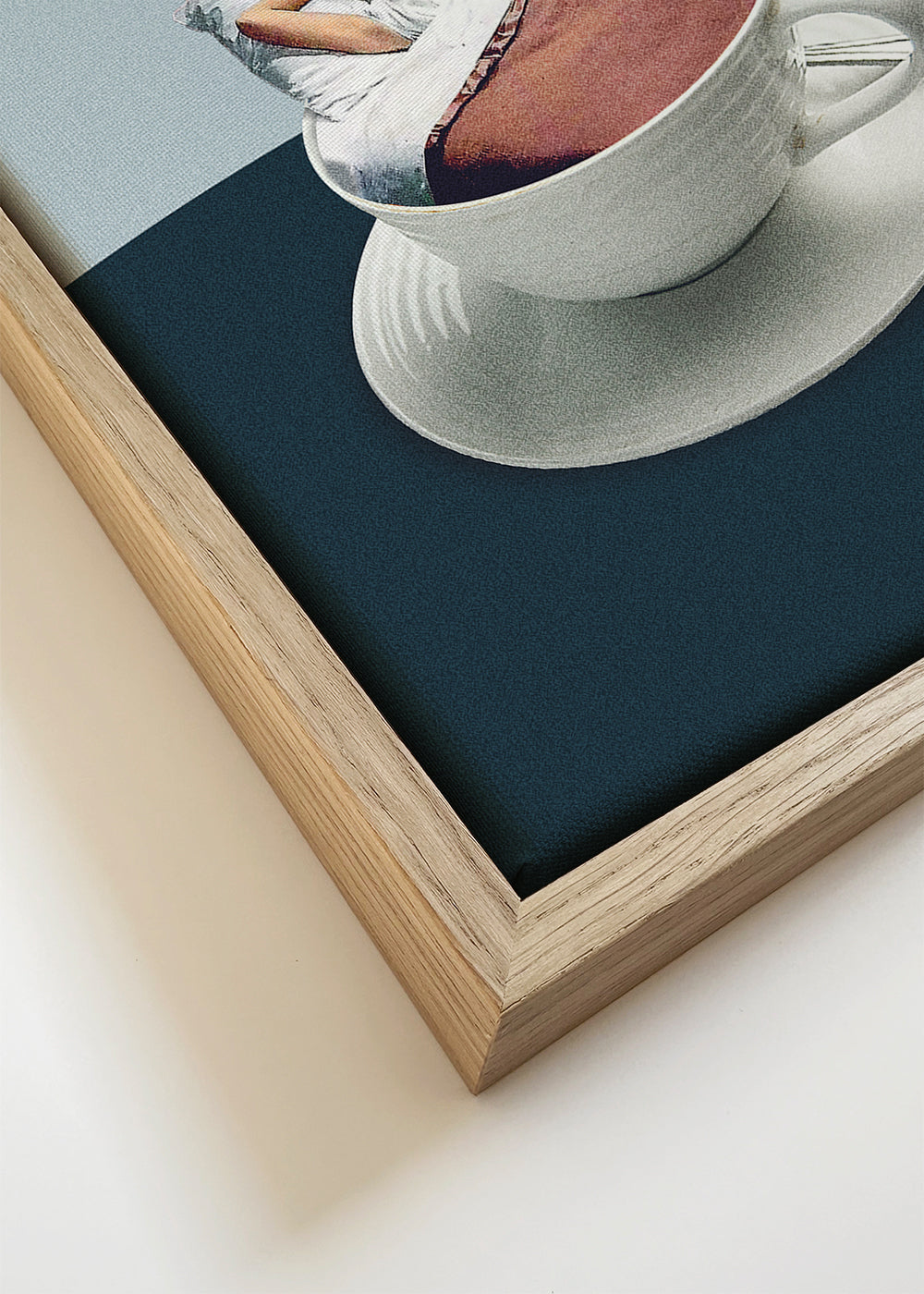 Wenn Sie die Passepartout-Option wählen, fügen wir die weiße matte Platte dem Rahmen hinzu und reduzieren das Design der Arbeit. Wählen Sie beispielsweise ein Druckformat 50x70 cm, mit eichenfarbenem Rahmen und Passepartout, reduzieren wir das Design des Druckes auf das bisherige Format (40x50cm). So passt es sich perfekt an das Innenfenster des Passepartouts an.