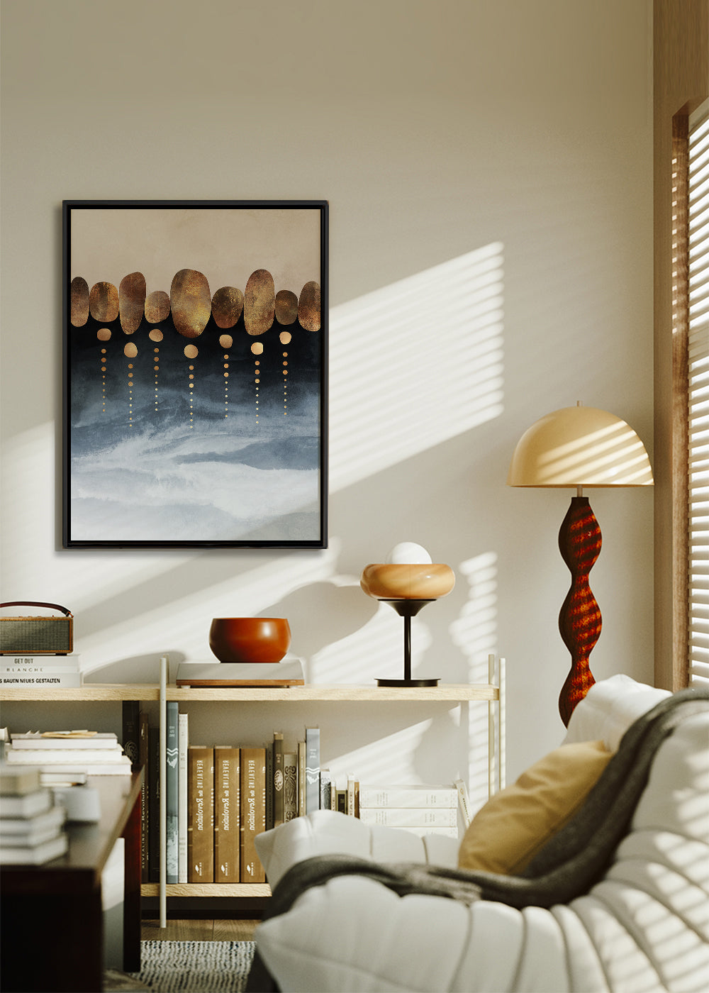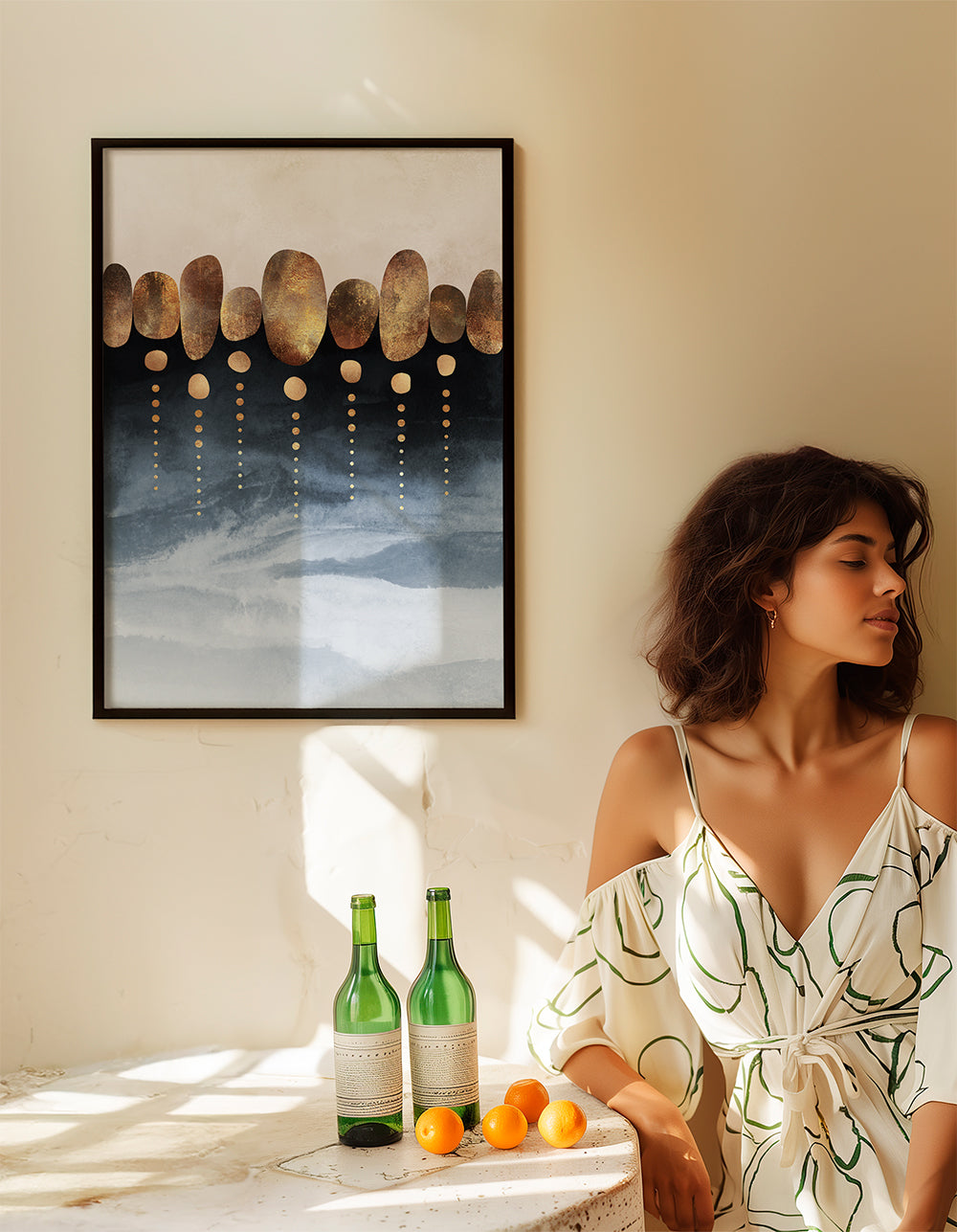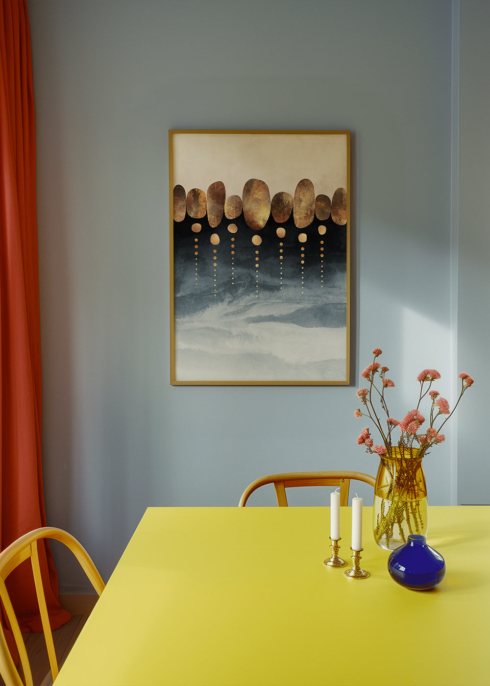 Ein Kunstdruck aus unserer Bilderauswahl geometrische bilder, des Kreativschöpfers Elisabeth Fredriksson, mit einem Hauch von Blau, und im Format Vertikal. Abstrakte und geometrische Formen erzeugen ein verspieltes, kreatives Ambiente. Eine harmonische Wanddeko ist bei jedem Einrichtungsstil wichtig.