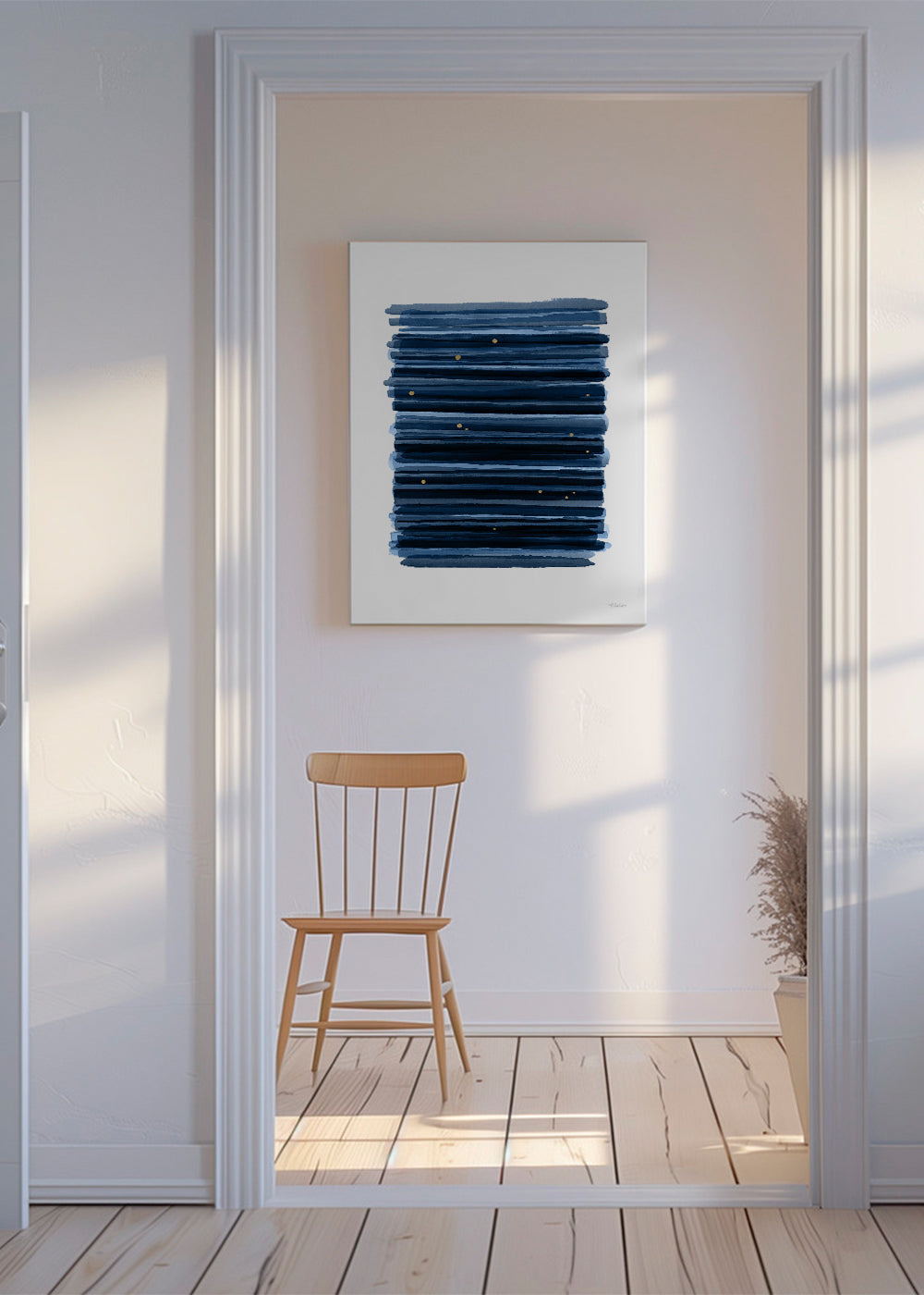 Ein Wandbild inspiriert durch die Kollektion von geometrische bilder, designed von Fabiana Silveira, mit einem Hauch von Blau, und Bildorientierung Vertikal. Geometrische Bilder sind eine ausgezeichnete Wahl für moderne und avantgardistische Einrichtungsstile. Eleganz inspiriert durch Kunst.