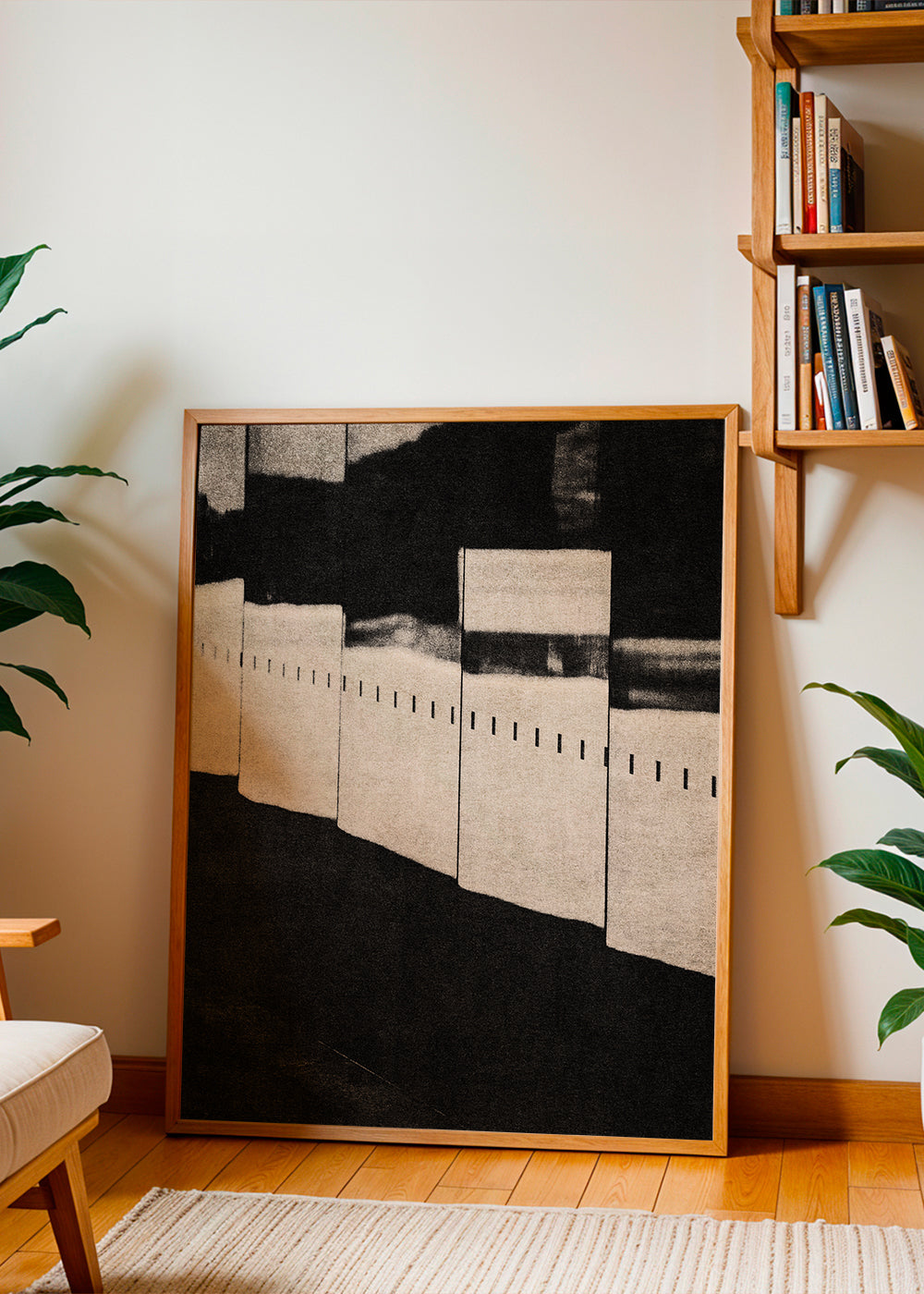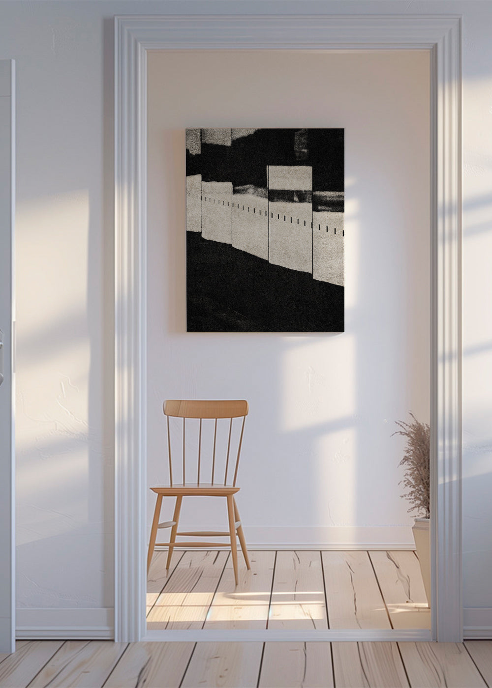 Ein Kunstwerk aus unserer handverlesene Auswahl nach poster abstrakt, designed von Daniel Coulmann, Farbtönen Schwarz, und geeignet für Bildpositionen Vertikal. Wenn du nach origineller und stilvoller Dekoration für die Einrichtung deiner Wohnung suchst, kannst du mit diesem abstrakten Design deiner Wand einen avantgardistischen Touch verleihen. Dekoriere die Wände deiner Wohnung mit Wandbildern.