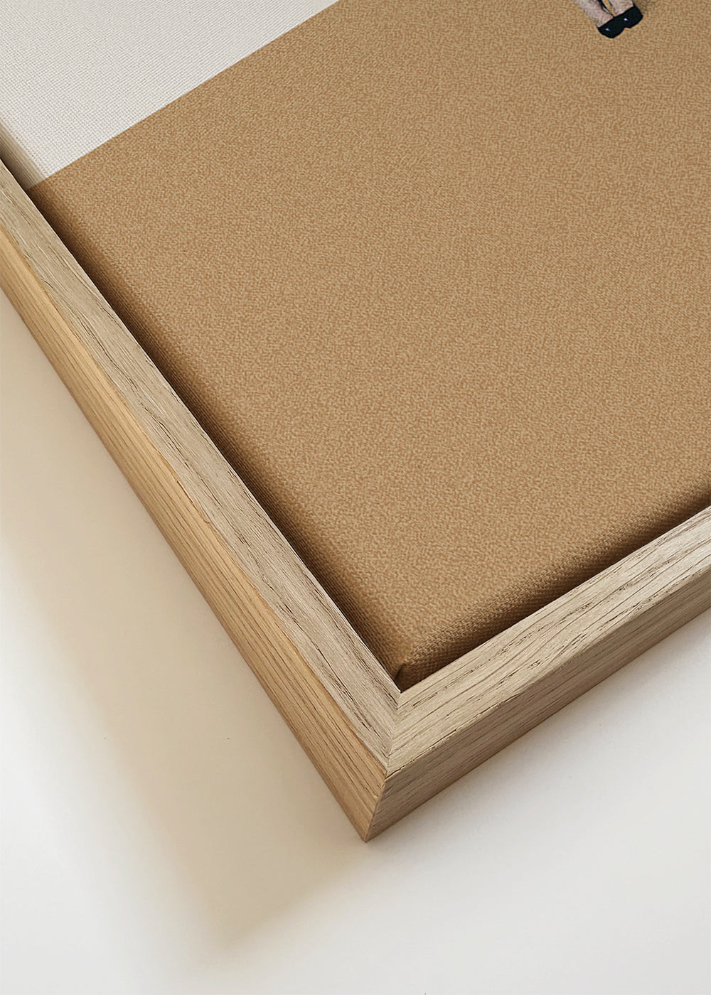 Wenn Sie die Passepartout-Option wählen, fügen wir die weiße matte Platte dem Rahmen hinzu und reduzieren das Design der Arbeit. Wählen Sie beispielsweise ein Druckformat 50x70 cm, mit eichenfarbenem Rahmen und Passepartout, reduzieren wir das Design des Druckes auf das bisherige Format (40x50cm). So passt es sich perfekt an das Innenfenster des Passepartouts an.