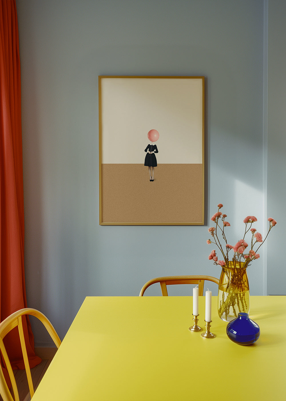 Ein Kunstdruck Im Stil unserer retro-poster und vintage-wandbilder, designed von Maarten Léon, mit Farbnuance Rosa, und für die Bildpositionen Vertikal. Verleihe deiner Inneneinrichtung mit diesem Wandbild im Retro-Style, in Kombination mit anderen, einen schönen Vintage-Touch. Verleihe deinen Zimmern mit Kunst einen neuen Look.