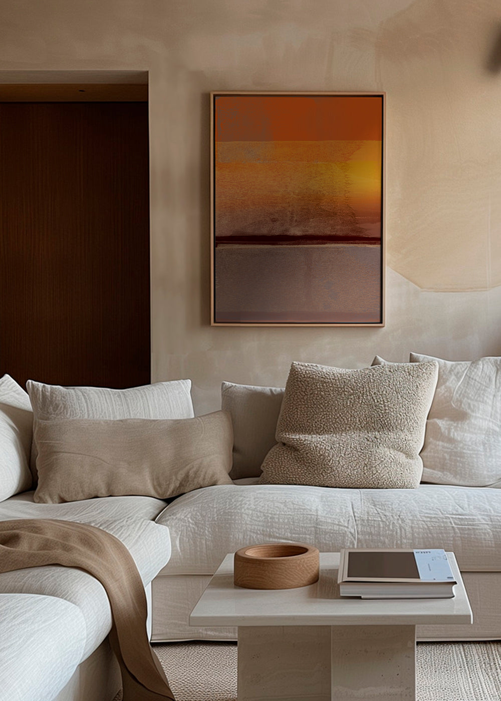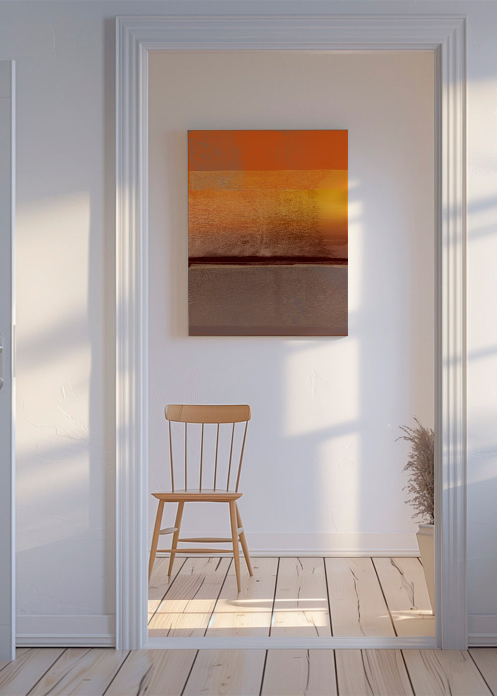 Ein Werk, das Wände mit geschichteter Wärme und moderner Präsenz füllt.