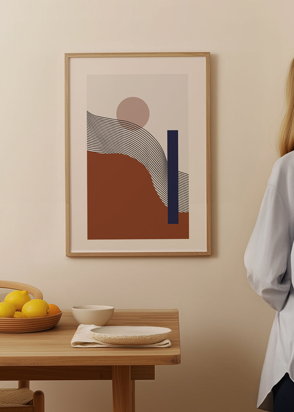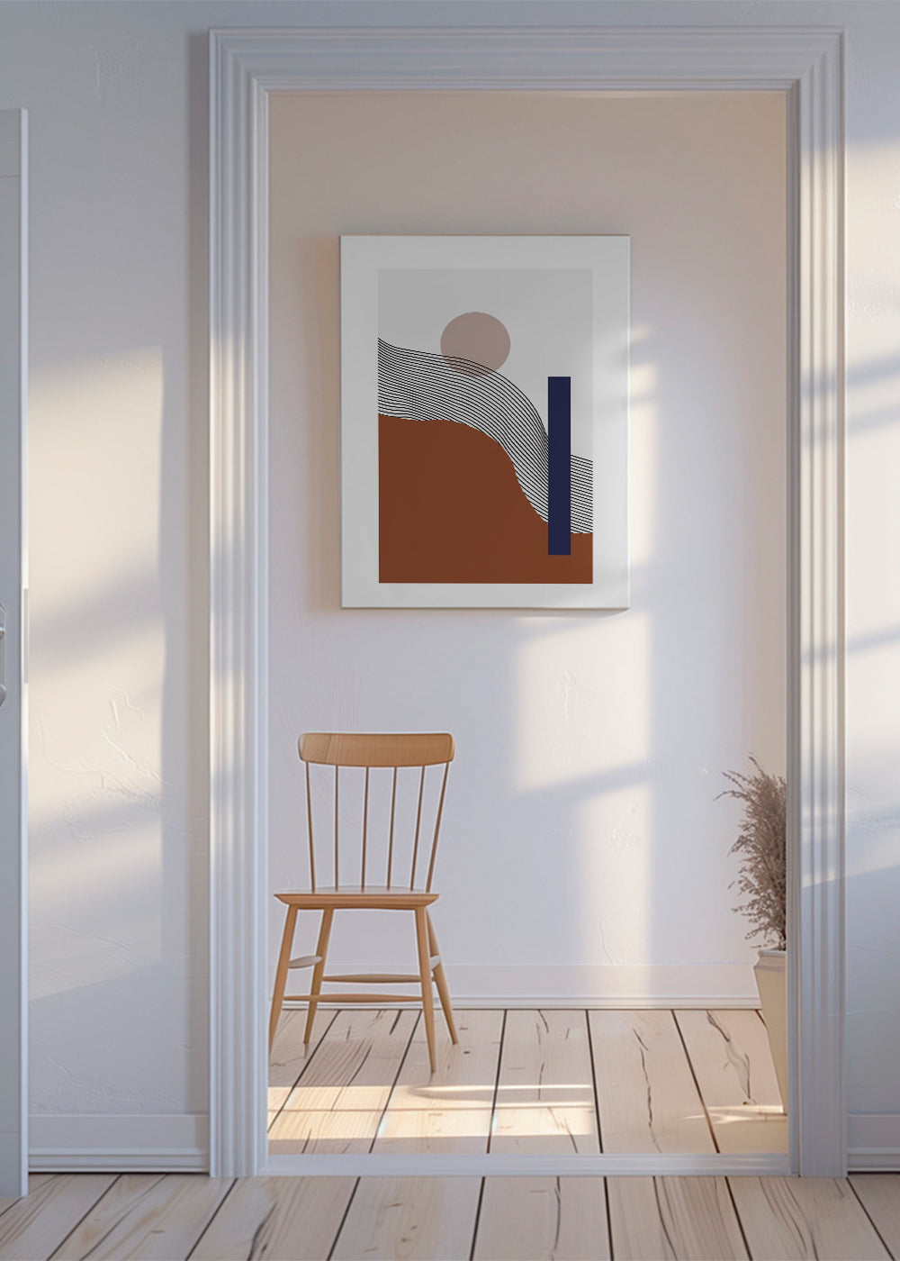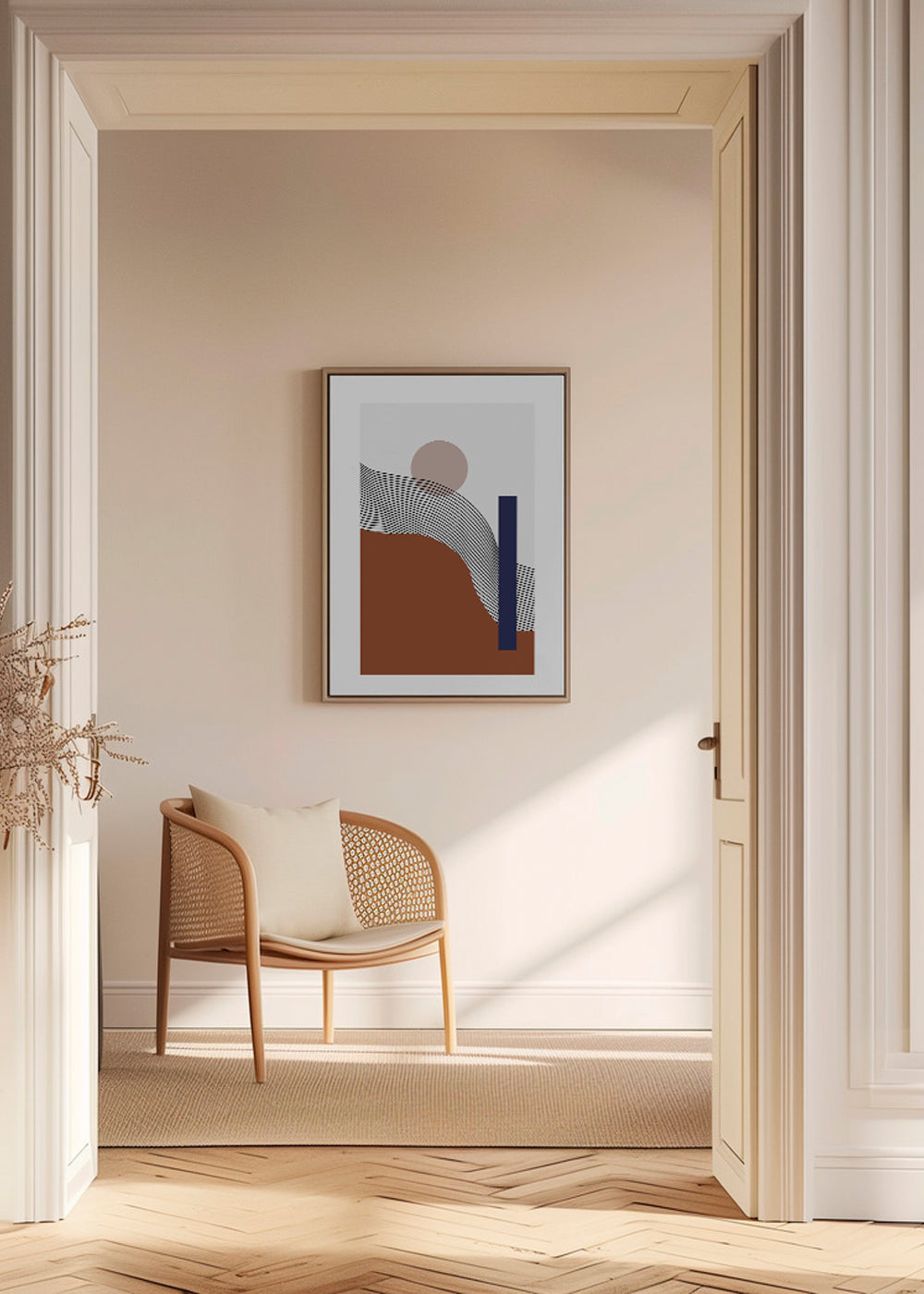 Dieses Wandbild aus unserer Kunstauswahl geometrische bilder, kreiert von Studio Krone Kern, mit Nuancen Braun, und mit Ausrichtung Vertikal. Geometrische Kunst ist eine elegante Stilrichtung für die Dekoration der Wände zu Hause. Frische und Originalität. Weiß gerahmte Bilder kommen besonders gut zum Ausdruck.
