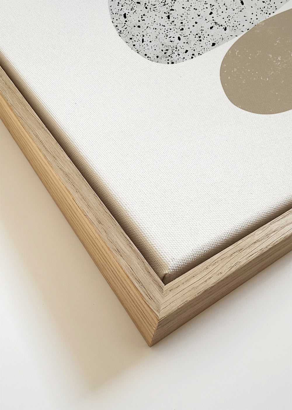 Alle unsere Rahmen werden in Spanien hergestellt. Die weißen, schwarzen und Eichenrahmen sind aus Ayous-Holz gefertigt, und die Eichenrahmen sind mit Eiche furniert, während die metallischen Rahmen aus Aluminium sind.