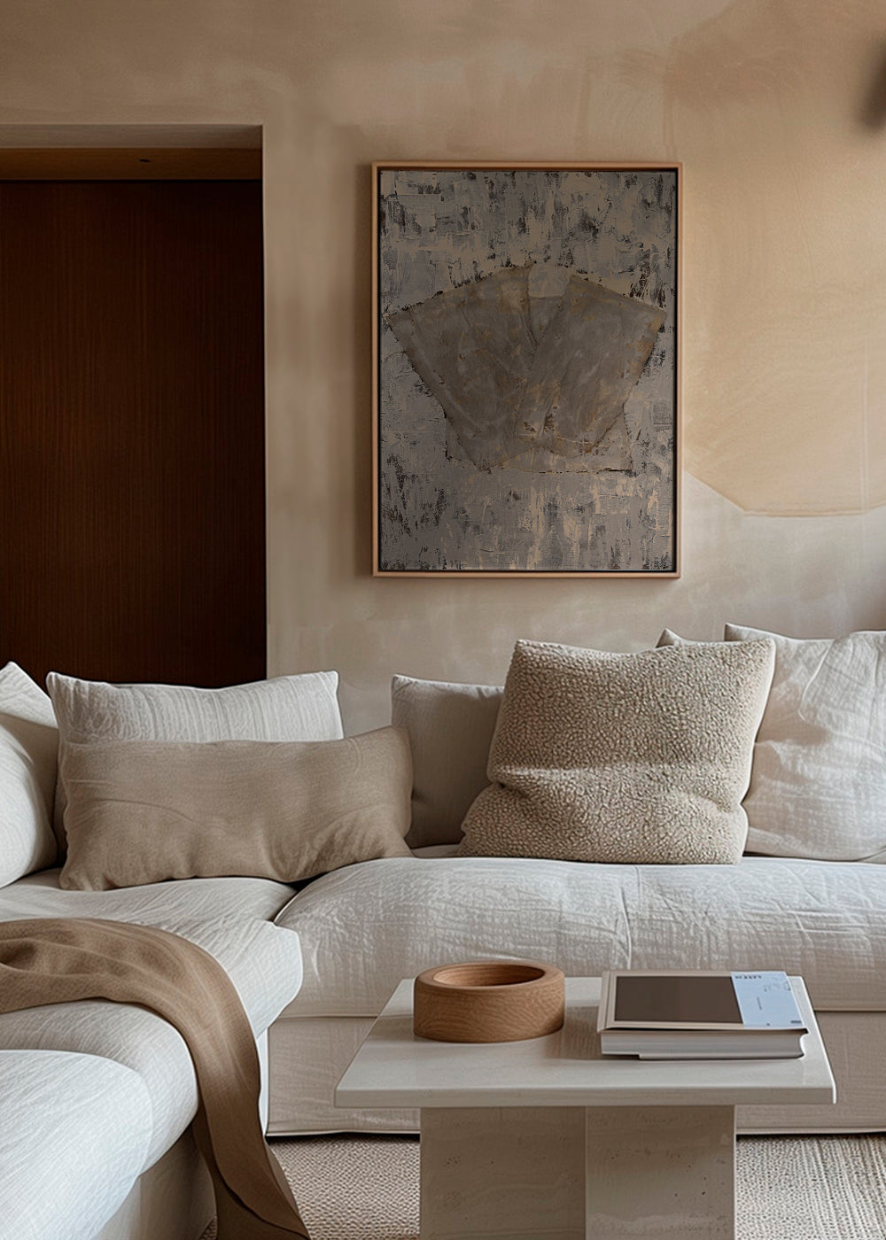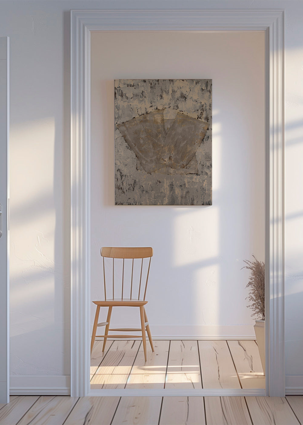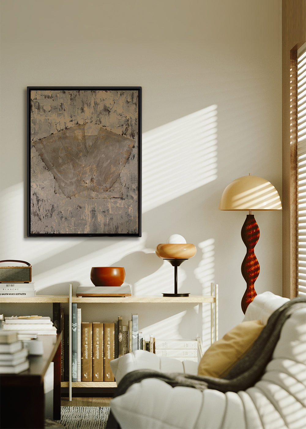 Ein Kunstwerk aus der Kollektion von poster abstrakt, designed von Elena Camacho Art, mit Pigmenten grau, und ideal für die Bildposition vertikal. Es ist ein abstraktes Kunstwerk, das perfekt zu jedem Wohnraum passt. Mache aus deiner Wand ein Bild für die Götter.