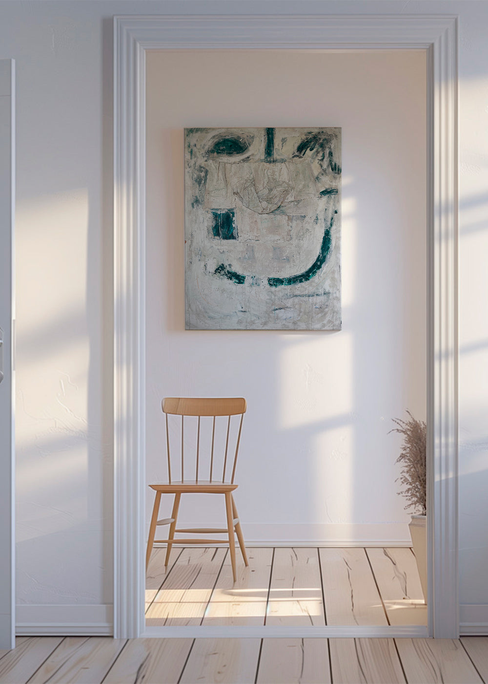 Das Passepartout ist eine weiße, matte Pappe, die das Poster umgibt, um es vor Methacrylat zu schützen, und die auch die Ausdruckskraft der Arbeit verstärkt und Details hervorhebt.