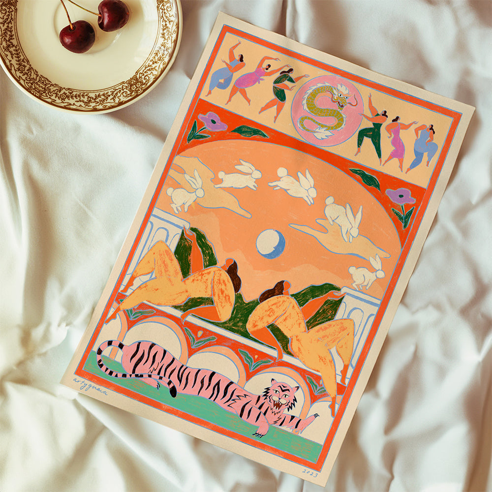 Poster abstrakt Rabbit Jumps Over the Moon - Arty Guava