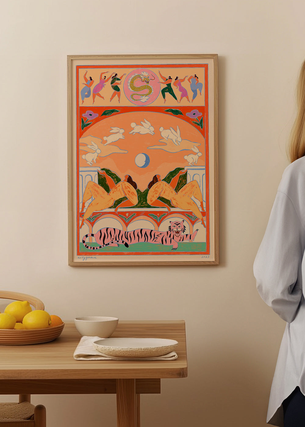 Schönes Poster aus unserer Themengruppe wandbild mit frau, aus der Kollektion des Künstlers 1x, mit Pigmenten mehrfarbig, und im Format vertikal. Das Wandbild ist ideal für Wohnbereiche mit künstlerischem und kreativem Flair. Unsere Poster mit Zeichnungen und Illustrationen sind ideal um leere, langweilige Wände zu dekorieren. Das Bild, auf das deine Wand gewartet hat.