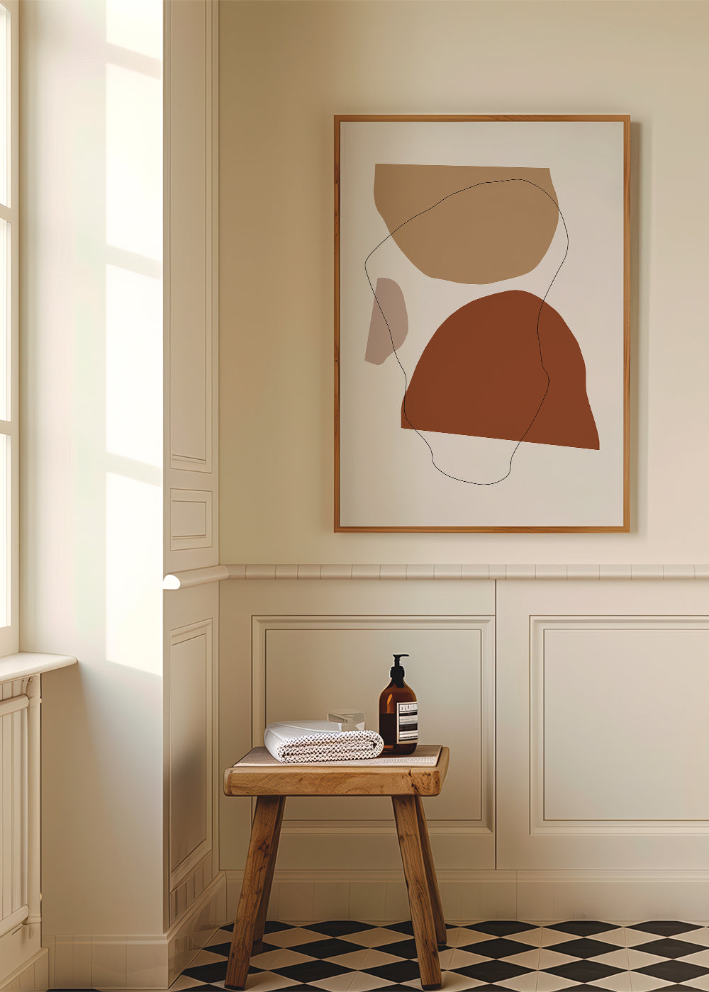 Dieses Poster aus unserer Bilderauswahl geometrische bilder, Künstlern Studio Krone Kern, mit Farbtönen Braun, und mit Bildposition Vertikal. Geometrische Kunst ist eine elegante Stilrichtung für die Dekoration der Wände zu Hause. Unverfälschte Kunst und authentisches Design.