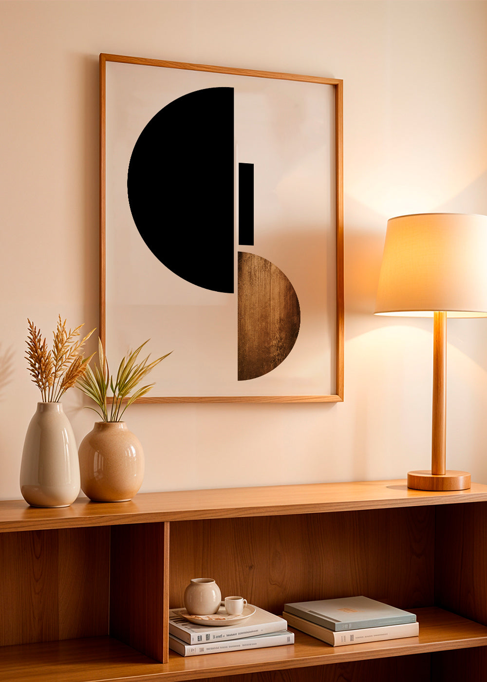 Alle unsere Rahmen werden in Spanien hergestellt. Die weißen, schwarzen und Eichenrahmen sind aus Ayous-Holz gefertigt, und die Eichenrahmen sind mit Eiche furniert, während die metallischen Rahmen aus Aluminium sind.