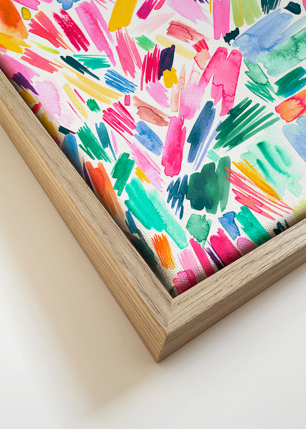 Alle unsere Rahmen werden in Spanien hergestellt. Die weißen, schwarzen und Eichenrahmen sind aus Ayous-Holz gefertigt, und die Eichenrahmen sind mit Eiche furniert, während die metallischen Rahmen aus Aluminium sind.