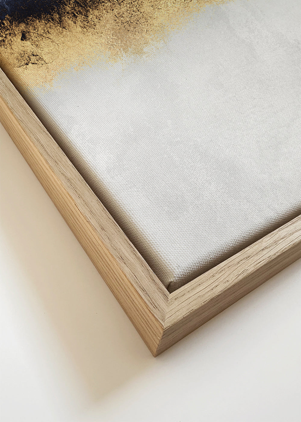 Alle unsere Rahmen werden in Spanien hergestellt. Die weißen, schwarzen und Eichenrahmen sind aus Ayous-Holz gefertigt, und die Eichenrahmen sind mit Eiche furniert, während die metallischen Rahmen aus Aluminium sind.