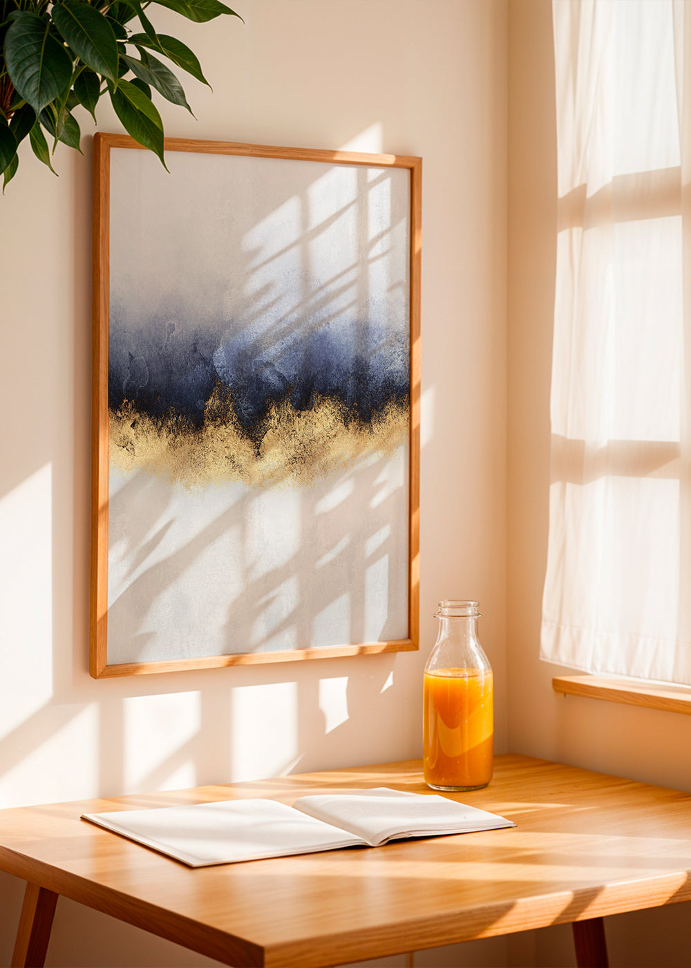 Wenn Sie die Passepartout-Option wählen, fügen wir die weiße matte Platte dem Rahmen hinzu und reduzieren das Design der Arbeit. Wählen Sie beispielsweise ein Druckformat 50x70 cm, mit eichenfarbenem Rahmen und Passepartout, reduzieren wir das Design des Druckes auf das bisherige Format (40x50cm). So passt es sich perfekt an das Innenfenster des Passepartouts an.