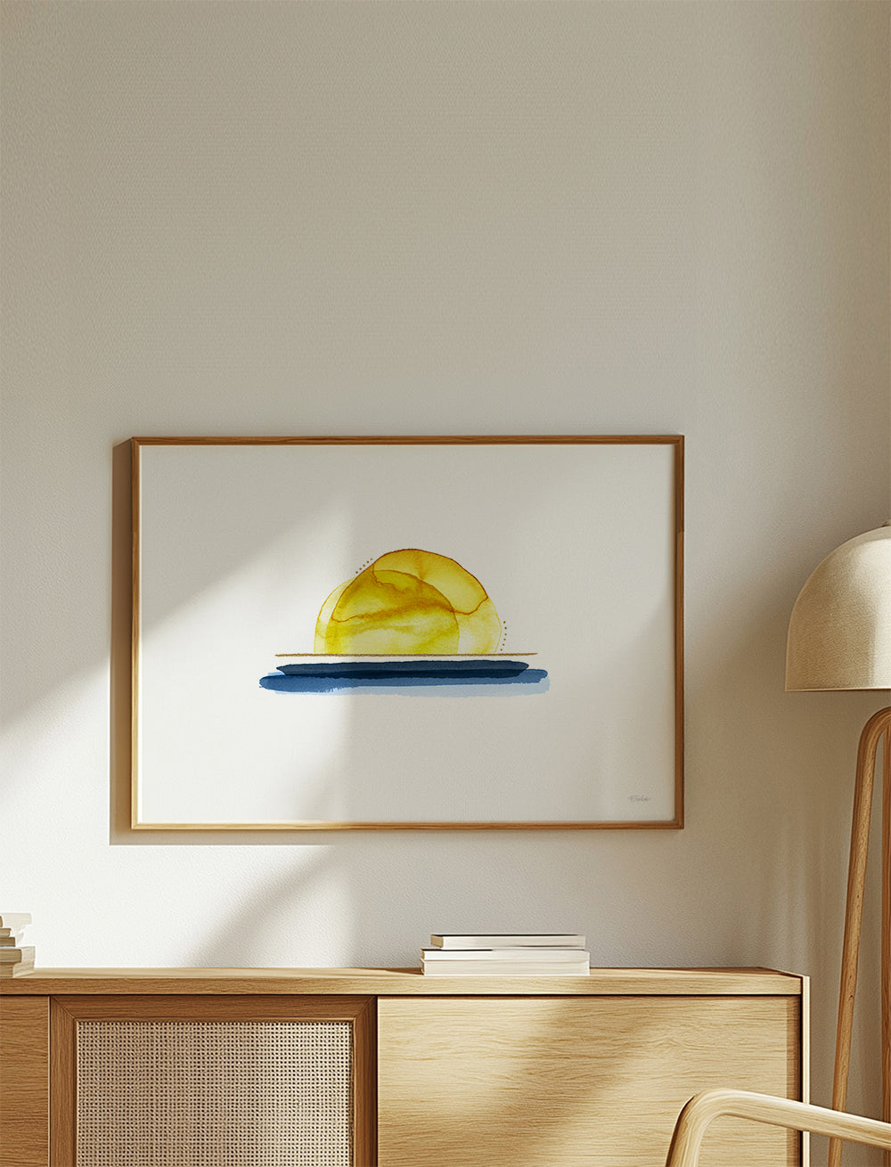 Ein Kunstdruck aus unserer Kollektion von geometrische bilder, designed von Fabiana Silveira, mit Nuancen Blau, und mit Bildposition Horizontal. Geometrische Kunst ist eine elegante Stilrichtung für die Dekoration der Wände zu Hause. Es gibt weder schöne noch hässliche Wände – es gibt nur dekorierte und leere Wände.