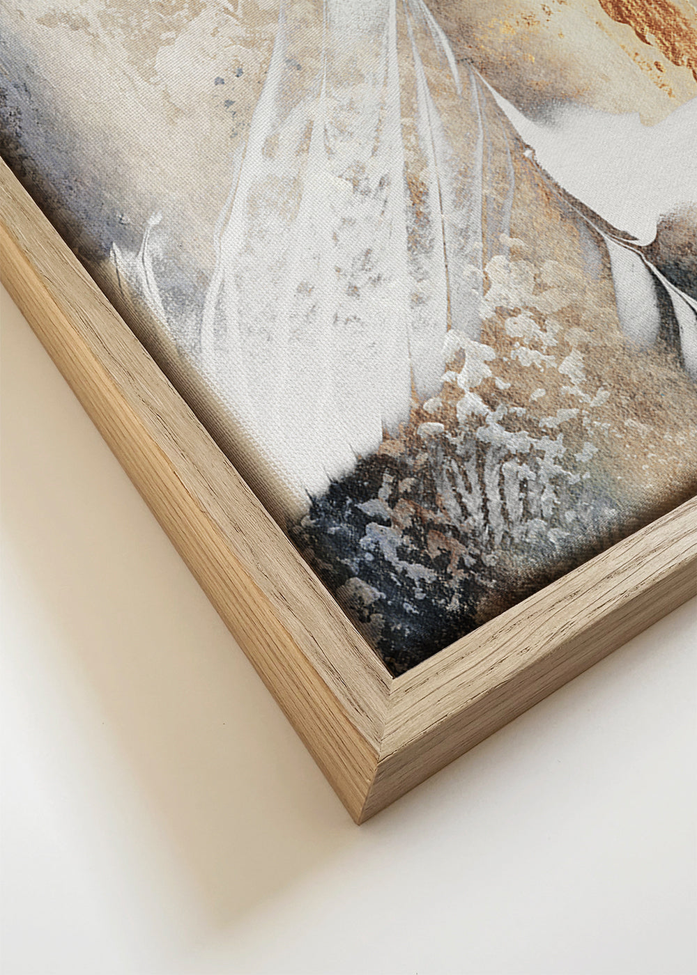 Wenn Sie die Passepartout-Option wählen, fügen wir die weiße matte Platte dem Rahmen hinzu und reduzieren das Design der Arbeit. Wählen Sie beispielsweise ein Druckformat 50x70 cm, mit eichenfarbenem Rahmen und Passepartout, reduzieren wir das Design des Druckes auf das bisherige Format (40x50cm). So passt es sich perfekt an das Innenfenster des Passepartouts an.