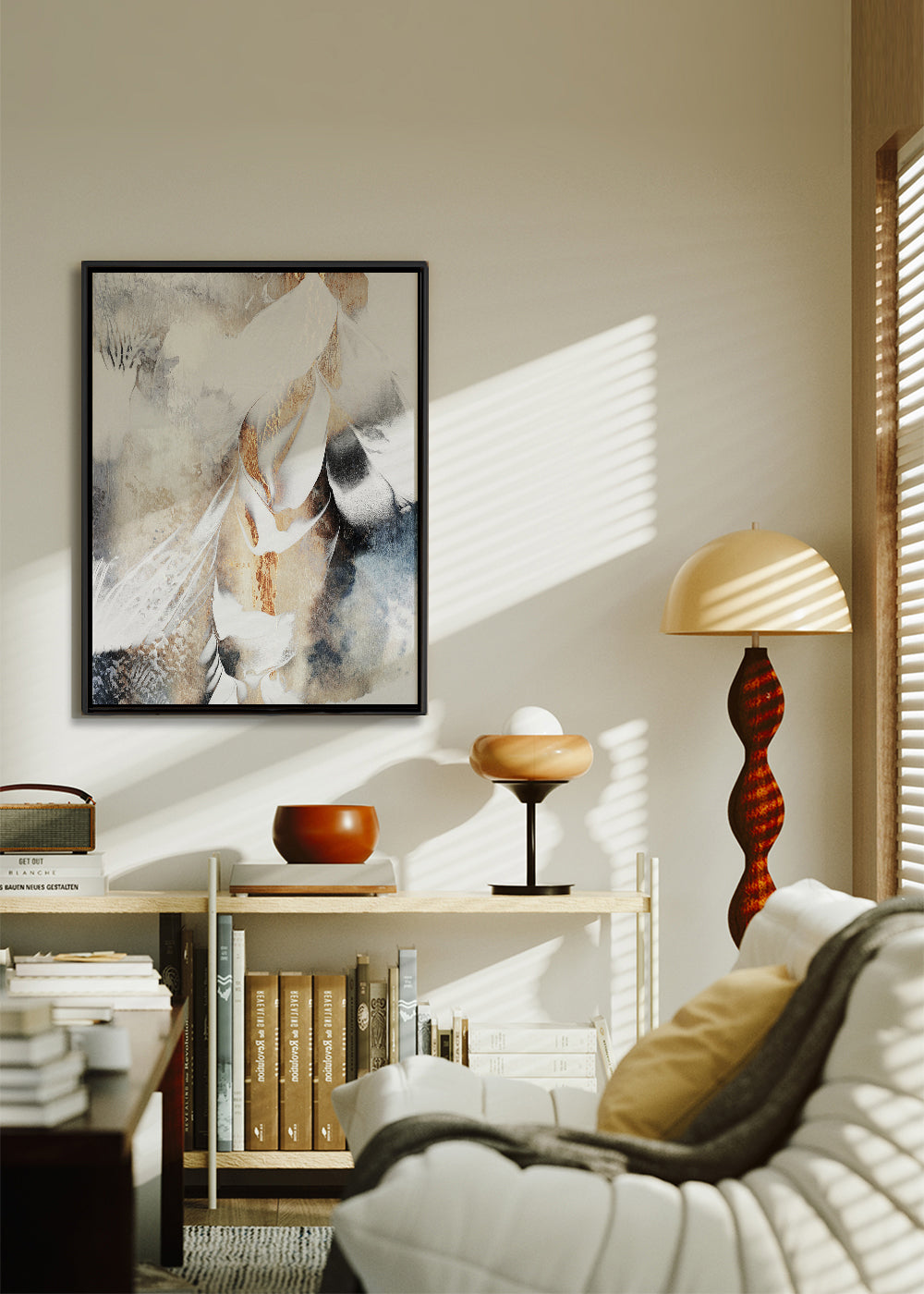 Ein Kunstwerk aus unserer Kunstauswahl poster abstrakt, designed von Elisabeth Fredriksson, mit Farbtönen Gold, und im Format Vertikal. Wenn du nach origineller und stilvoller Dekoration für die Einrichtung deiner Wohnung suchst, kannst du mit diesem abstrakten Design deiner Wand einen avantgardistischen Touch verleihen. Lasse dich von Kunst verzaubern.