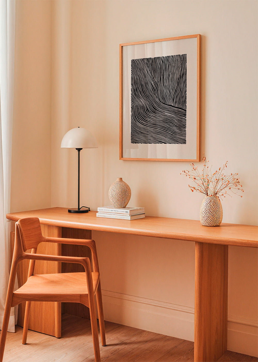 Alle unsere Rahmen werden in Spanien hergestellt. Die weißen, schwarzen und Eichenrahmen sind aus Ayous-Holz gefertigt, und die Eichenrahmen sind mit Eiche furniert, während die metallischen Rahmen aus Aluminium sind.