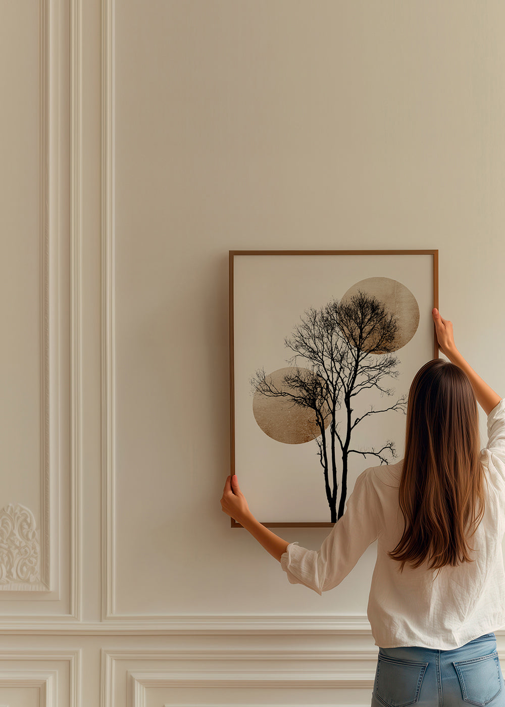 Um unsere Rahmen aufzuhängen, müssen Sie den schwarzen oder silbernen Metallbügel leicht von der Rückseite lösen. Einmal getrennt, können Sie es an dem Aufhänger aufhängen, den Sie je nach Material Ihrer Wand ausgewählt haben.