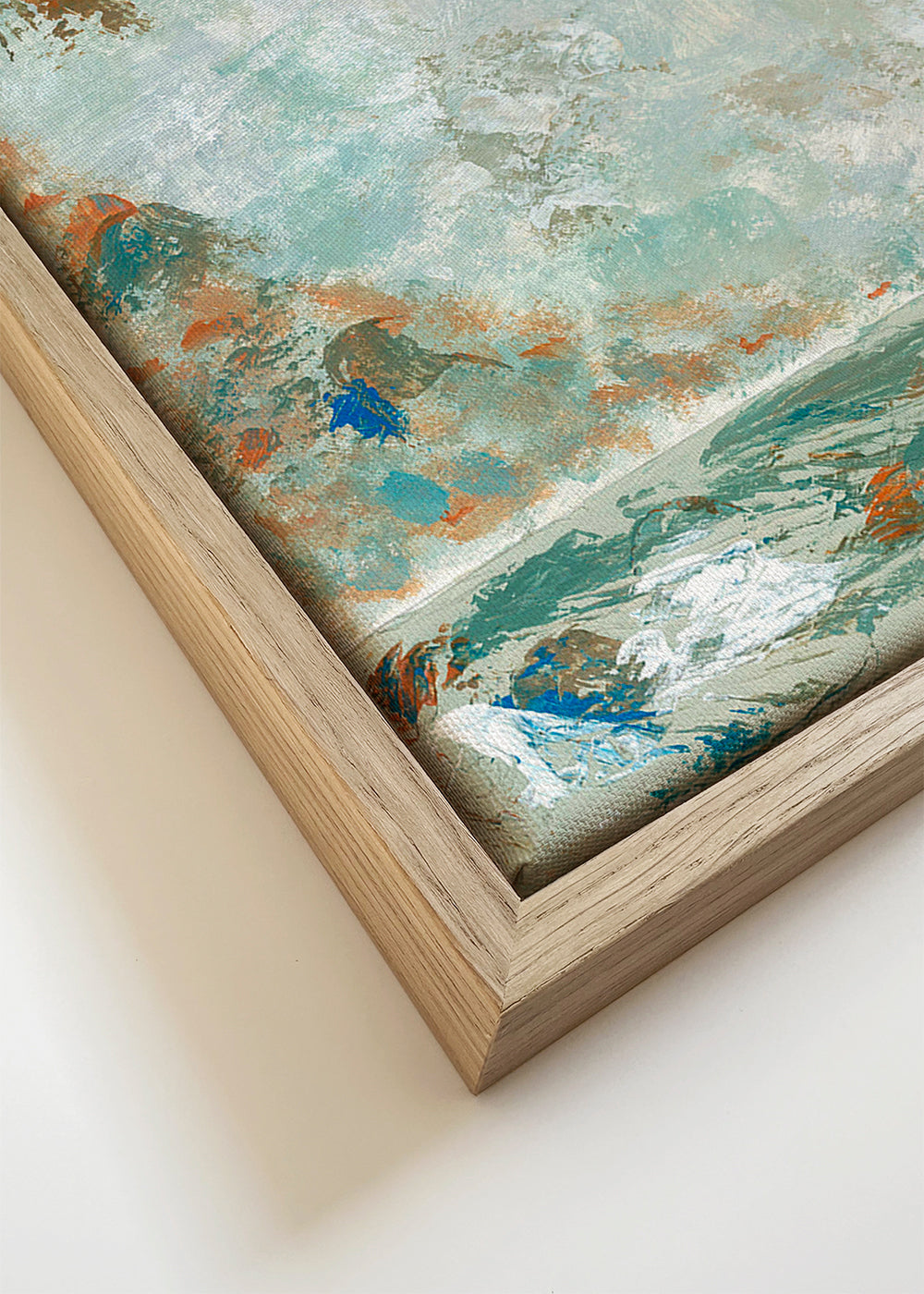 Wenn Sie die Passepartout-Option wählen, fügen wir die weiße matte Platte dem Rahmen hinzu und reduzieren das Design der Arbeit. Wählen Sie beispielsweise ein Druckformat 50x70 cm, mit eichenfarbenem Rahmen und Passepartout, reduzieren wir das Design des Druckes auf das bisherige Format (40x50cm). So passt es sich perfekt an das Innenfenster des Passepartouts an.