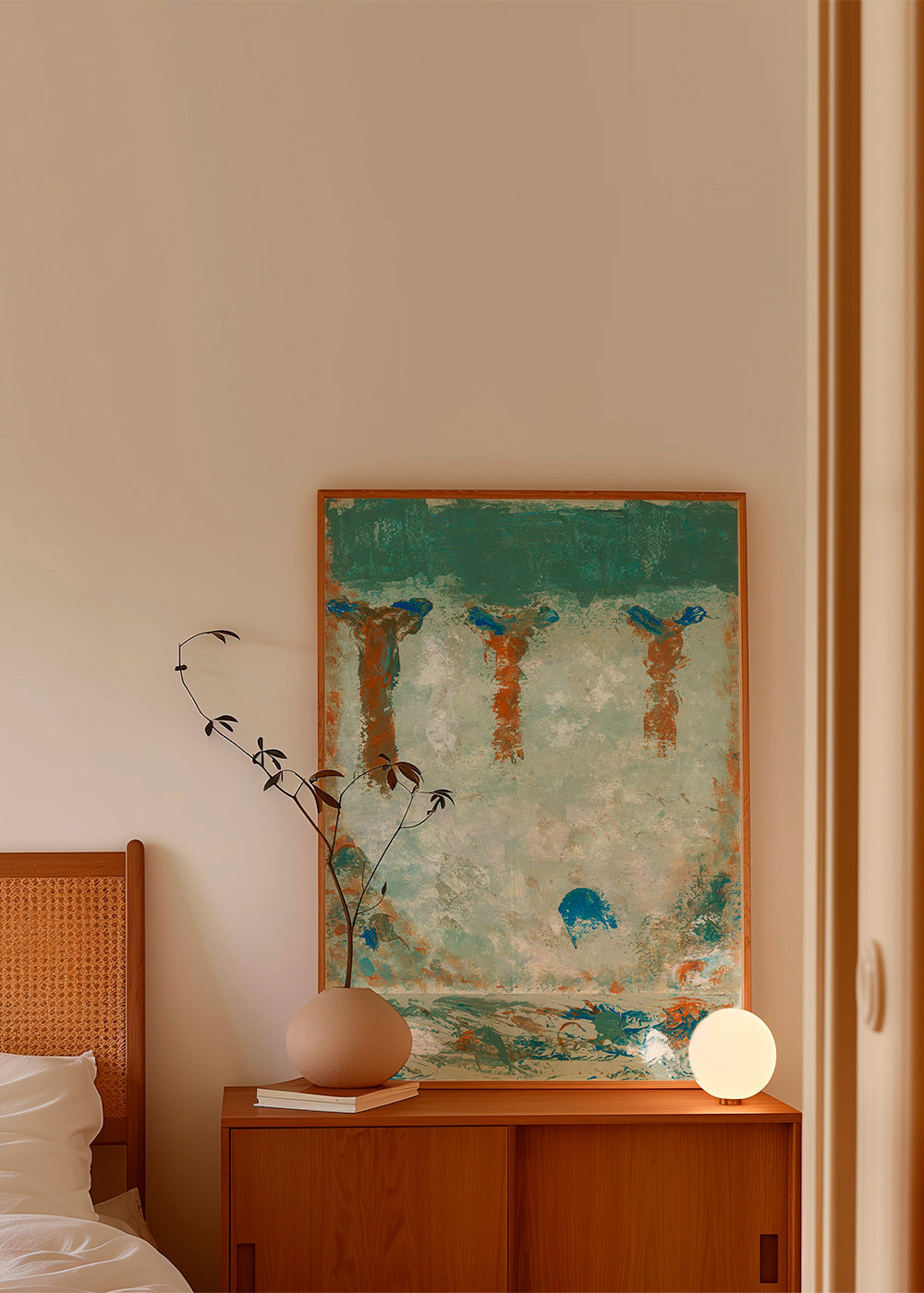 Schönes Poster aus unserer handverlesene Auswahl nach poster abstrakt, kreiert von Elena Camacho Art, mit einem Hauch von mehrfarbig, und für die Bildpositionen vertikal. Abstrakte Wandbilder und Poster machen Räume einzigartig. Neue Wandbilder können deinem Wohnraum einen frischen Look verleihen.