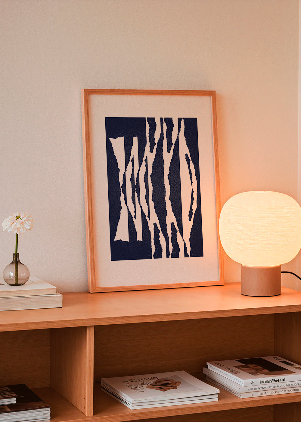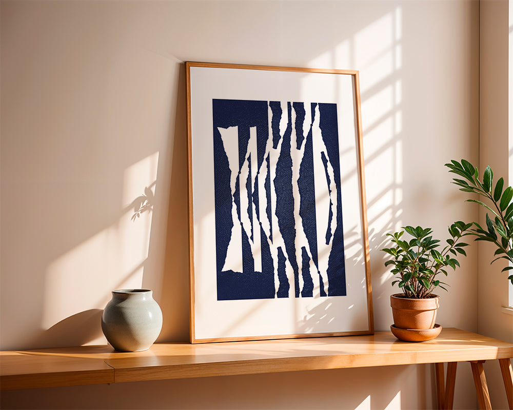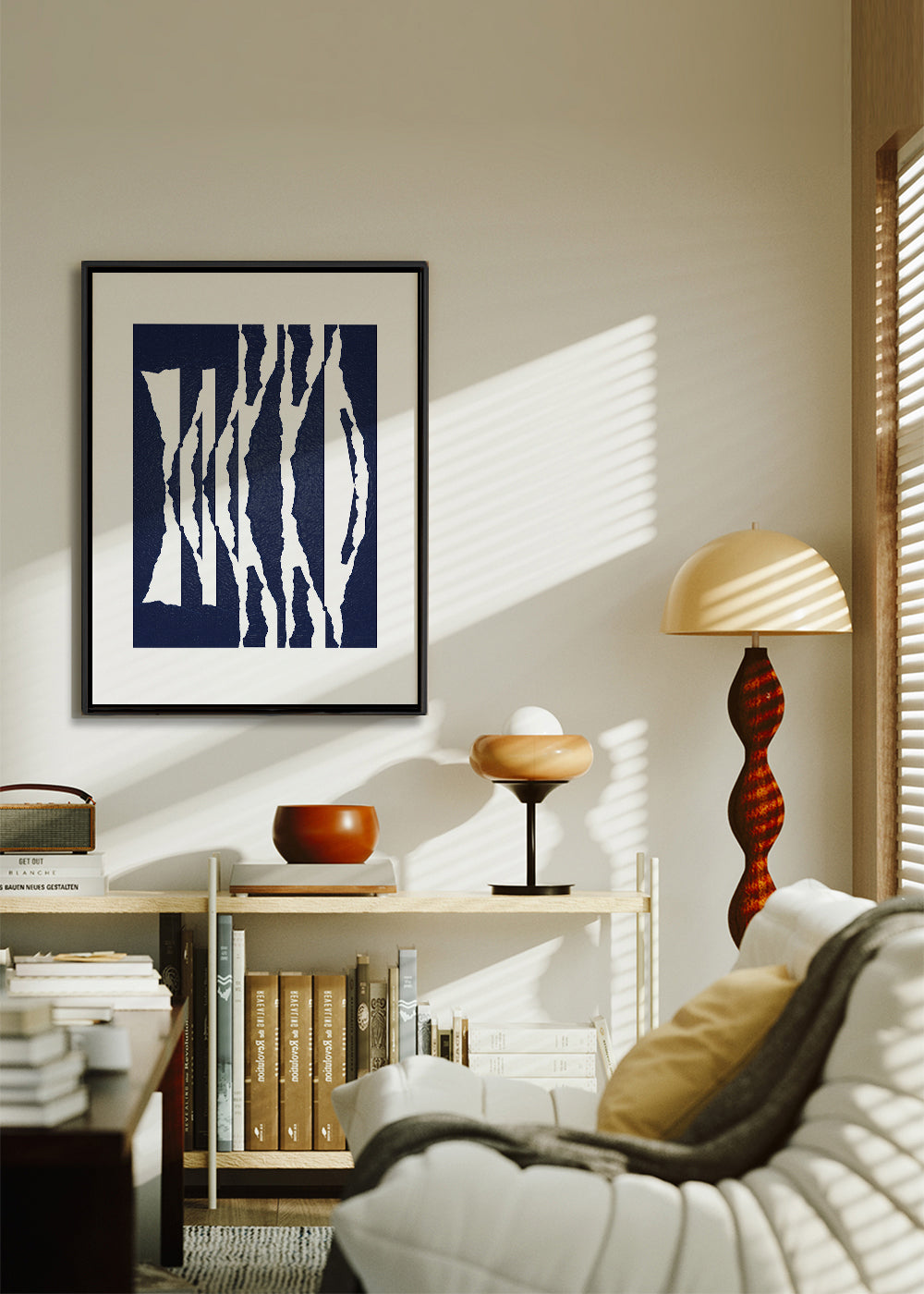 Schönes Designs inspiriert durch die Kollektion von poster abstrakt, von Anna Mainz, mit Schattierungen Blau, und mit Bildposition Vertikal. Abstrakte Einrichtungen sind ideal für alle die einen originellen Stil bevorzugen. Unverfälschte Kunst und authentisches Design. Das Wandbild wird mit weißem Bilderrahmen geliefert, der das Kunstwerk richtig in Szene setzt.