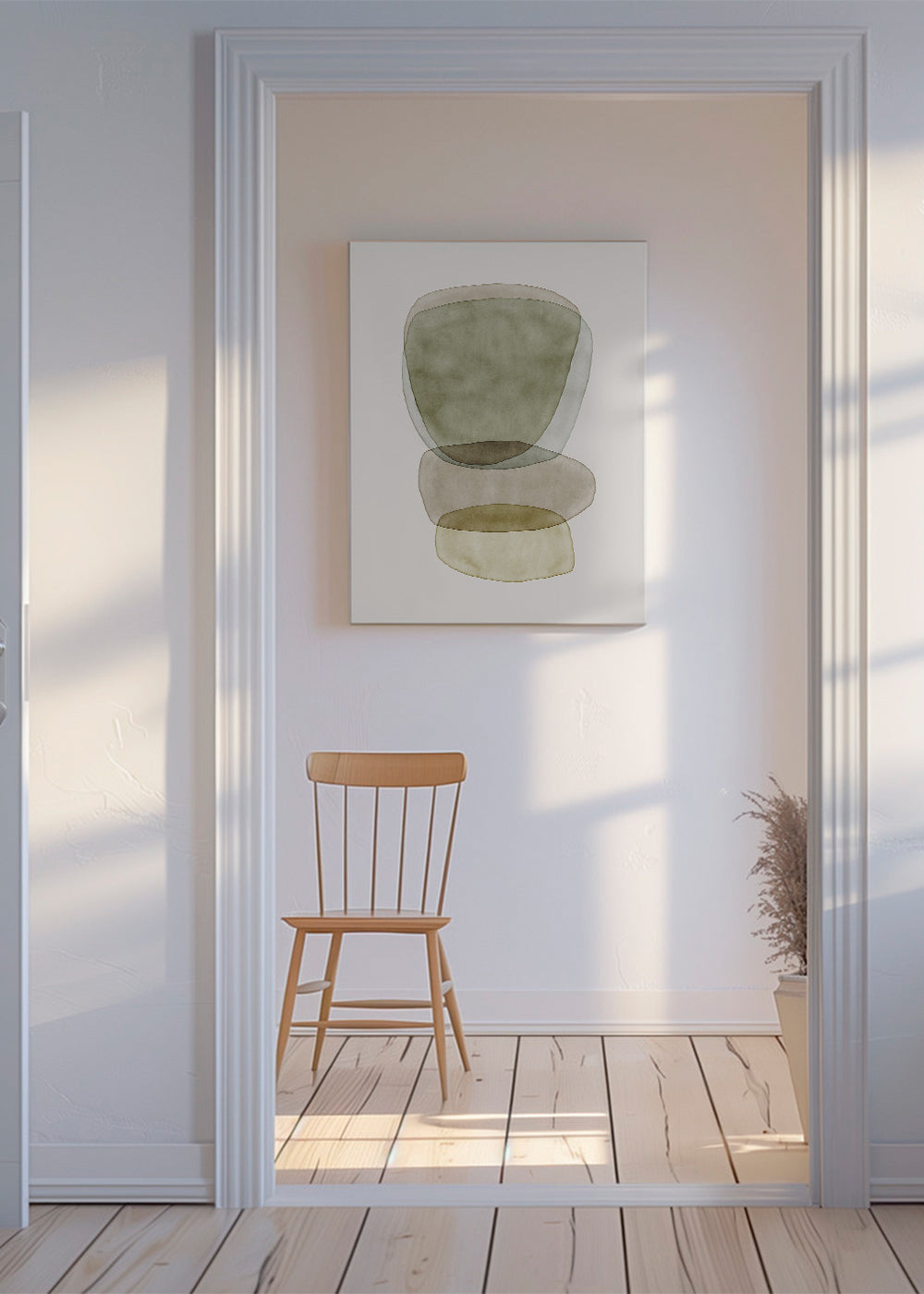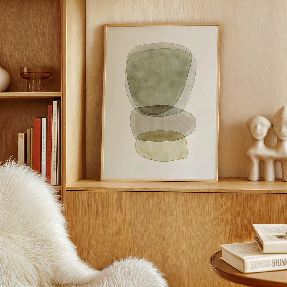 Ein Kunstwerk aus der Kollektion von geometrische bilder, aus der Kollektion des Künstlers Nouveau Prints, mit einem Hauch von braun, und ideal für die Bildposition vertikal. Abstrakte und geometrische Formen erzeugen ein verspieltes, kreatives Ambiente. Frische und Originalität.