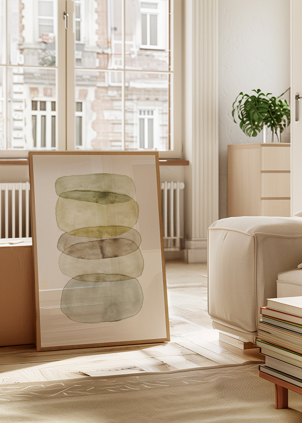 Ein Poster gehört zum Thema geometrische bilder, von Nouveau Prints, mit einem Hauch von braun, und mit Ausrichtung vertikal. Abstrakte und geometrische Formen erzeugen ein verspieltes, kreatives Ambiente. Hänge ein paar neue Bilder an die Wand und schon sieht der Raum ganz anders aus.