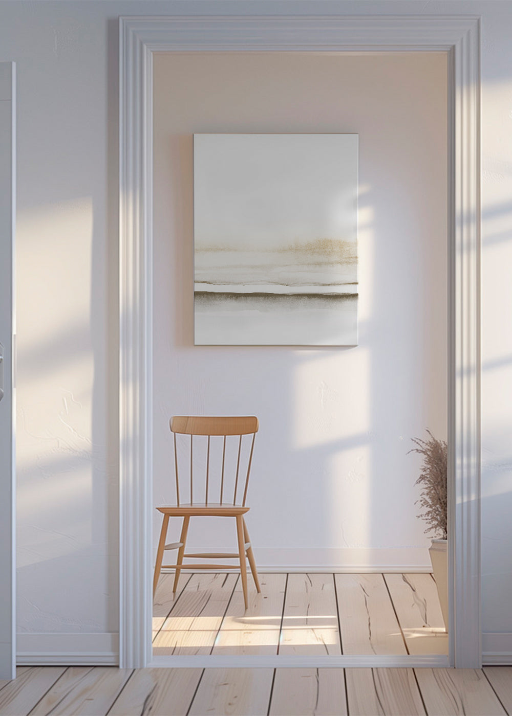 Wenn Sie die Passepartout-Option wählen, fügen wir die weiße matte Platte dem Rahmen hinzu und reduzieren das Design der Arbeit. Wählen Sie beispielsweise ein Druckformat 50x70 cm, mit eichenfarbenem Rahmen und Passepartout, reduzieren wir das Design des Druckes auf das bisherige Format (40x50cm). So passt es sich perfekt an das Innenfenster des Passepartouts an.
