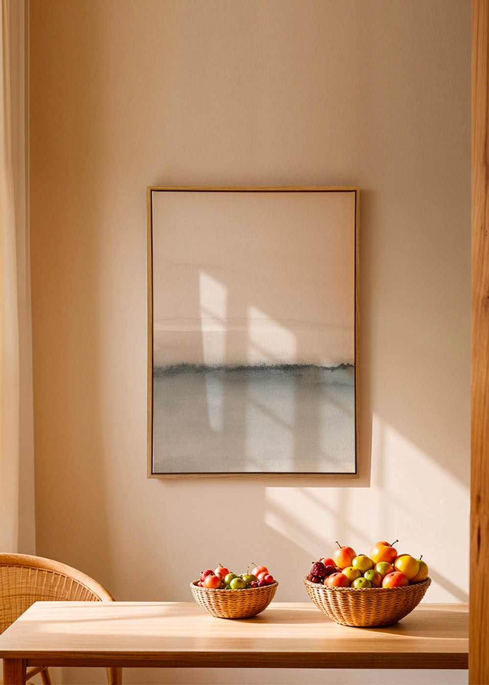 Wenn Sie die Passepartout-Option wählen, fügen wir die weiße matte Platte dem Rahmen hinzu und reduzieren das Design der Arbeit. Wählen Sie beispielsweise ein Druckformat 50x70 cm, mit eichenfarbenem Rahmen und Passepartout, reduzieren wir das Design des Druckes auf das bisherige Format (40x50cm). So passt es sich perfekt an das Innenfenster des Passepartouts an.