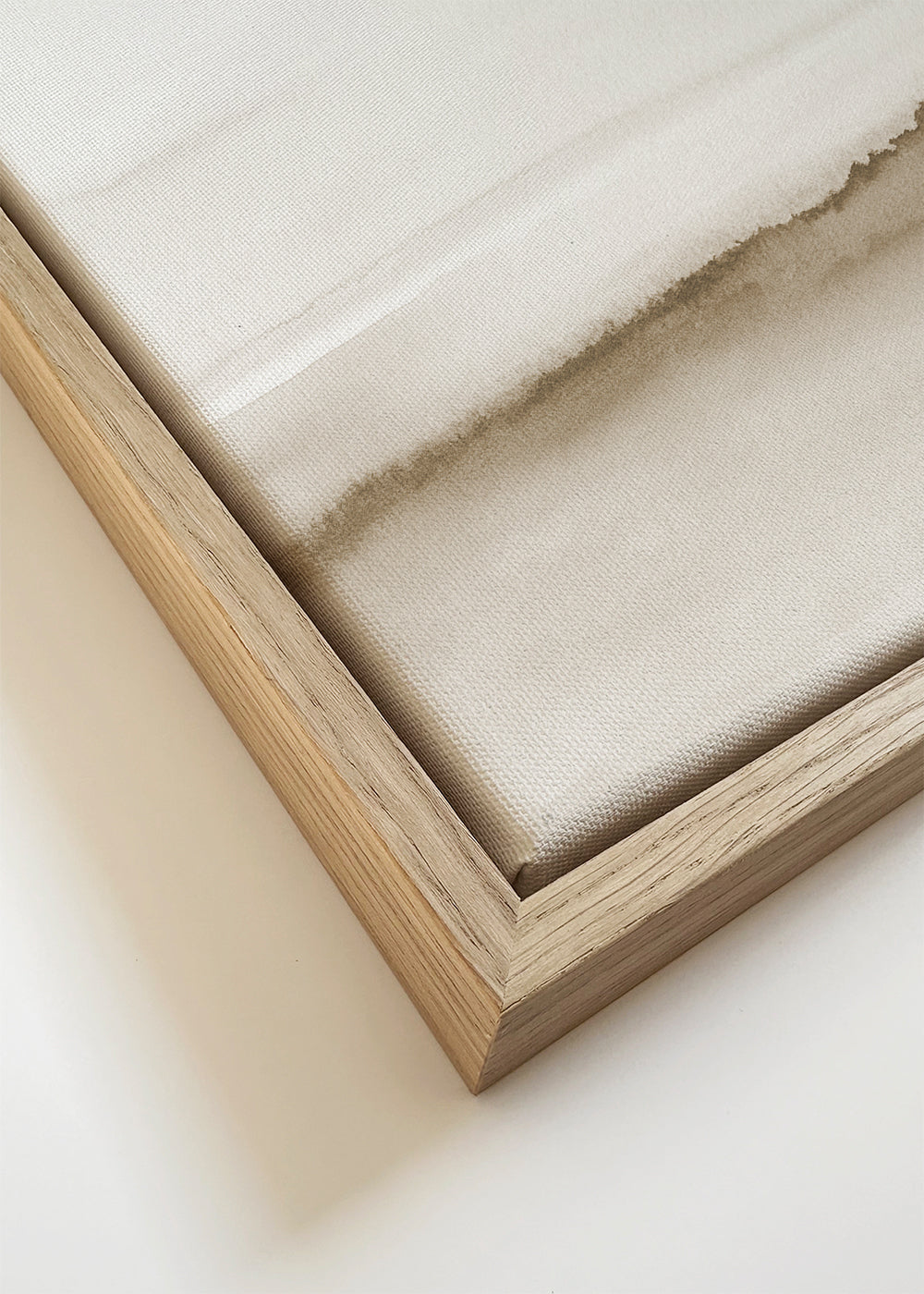 Alle unsere Rahmen werden in Spanien hergestellt. Die weißen, schwarzen und Eichenrahmen sind aus Ayous-Holz gefertigt, und die Eichenrahmen sind mit Eiche furniert, während die metallischen Rahmen aus Aluminium sind.