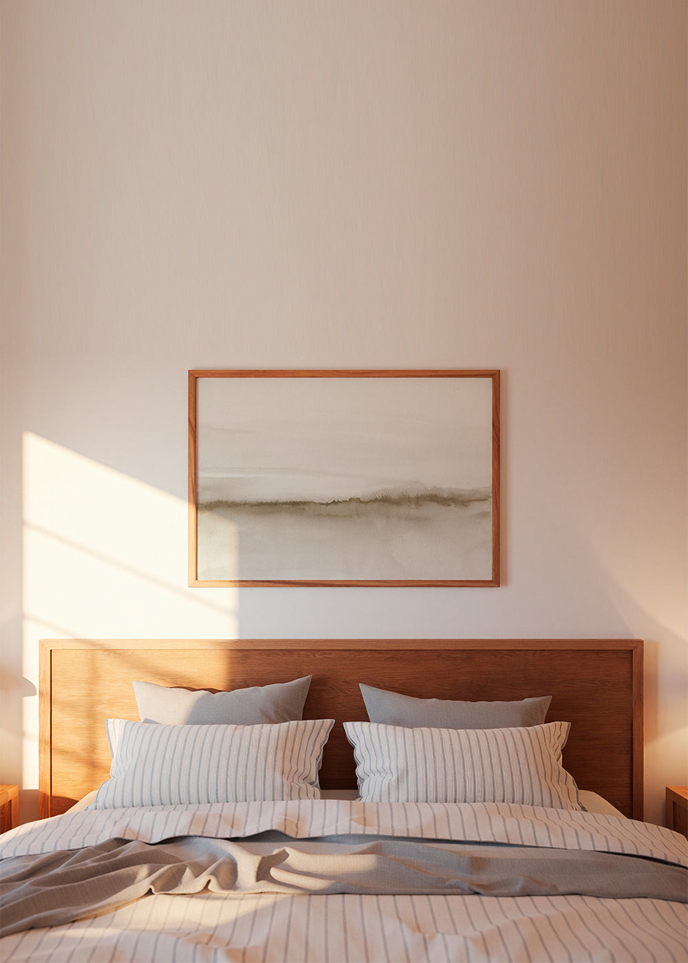 Wenn Sie die Passepartout-Option wählen, fügen wir die weiße matte Platte dem Rahmen hinzu und reduzieren das Design der Arbeit. Wählen Sie beispielsweise ein Druckformat 50x70 cm, mit eichenfarbenem Rahmen und Passepartout, reduzieren wir das Design des Druckes auf das bisherige Format (40x50cm). So passt es sich perfekt an das Innenfenster des Passepartouts an.