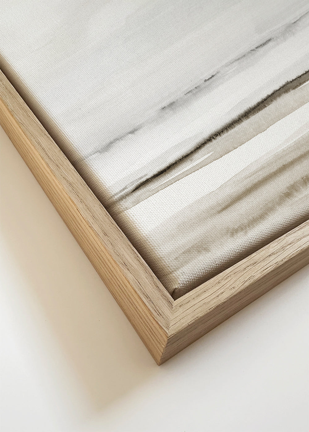 Alle unsere Rahmen werden in Spanien hergestellt. Die weißen, schwarzen und Eichenrahmen sind aus Ayous-Holz gefertigt, und die Eichenrahmen sind mit Eiche furniert, während die metallischen Rahmen aus Aluminium sind.