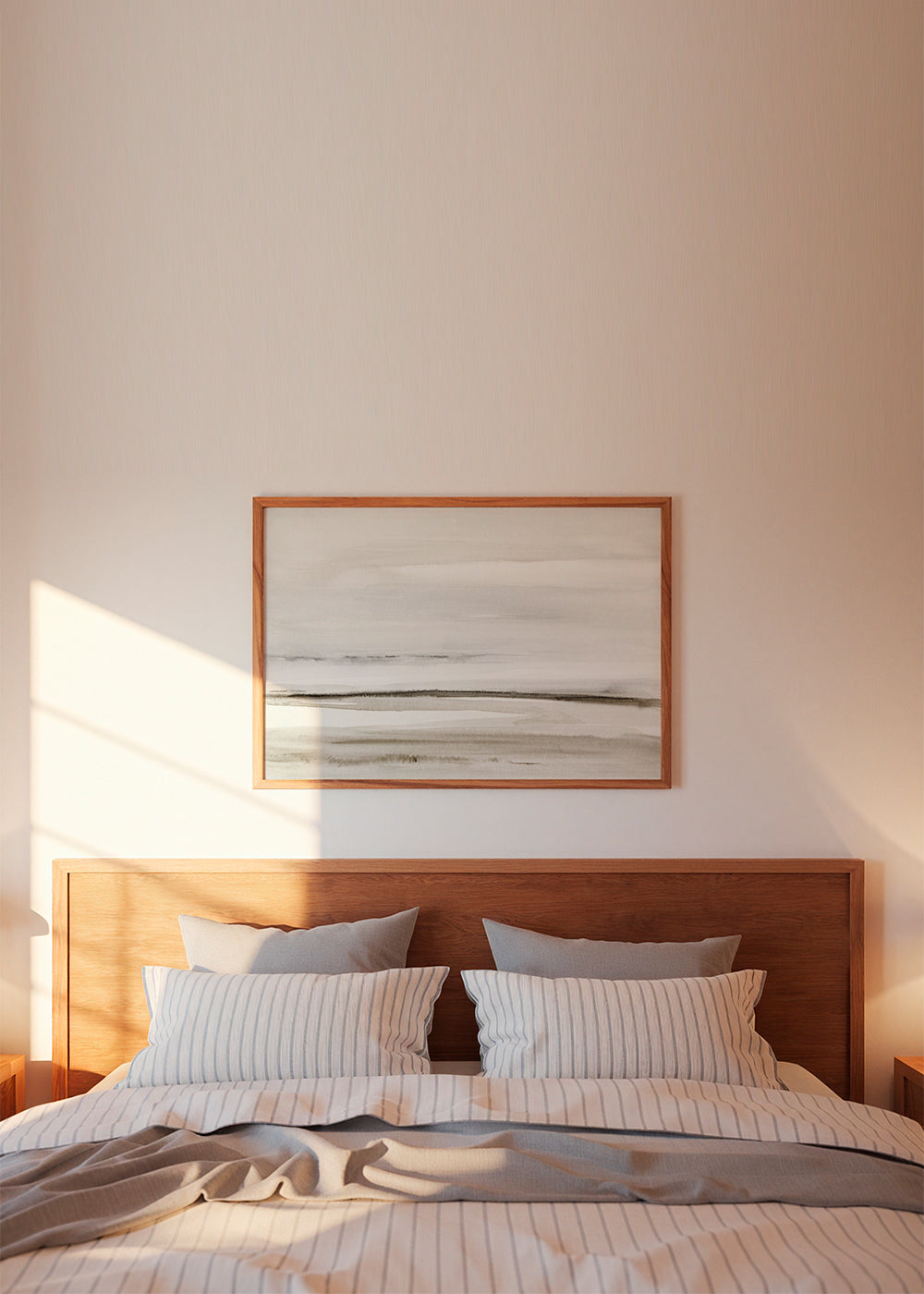 Wenn Sie die Passepartout-Option wählen, fügen wir die weiße matte Platte dem Rahmen hinzu und reduzieren das Design der Arbeit. Wählen Sie beispielsweise ein Druckformat 50x70 cm, mit eichenfarbenem Rahmen und Passepartout, reduzieren wir das Design des Druckes auf das bisherige Format (40x50cm). So passt es sich perfekt an das Innenfenster des Passepartouts an.