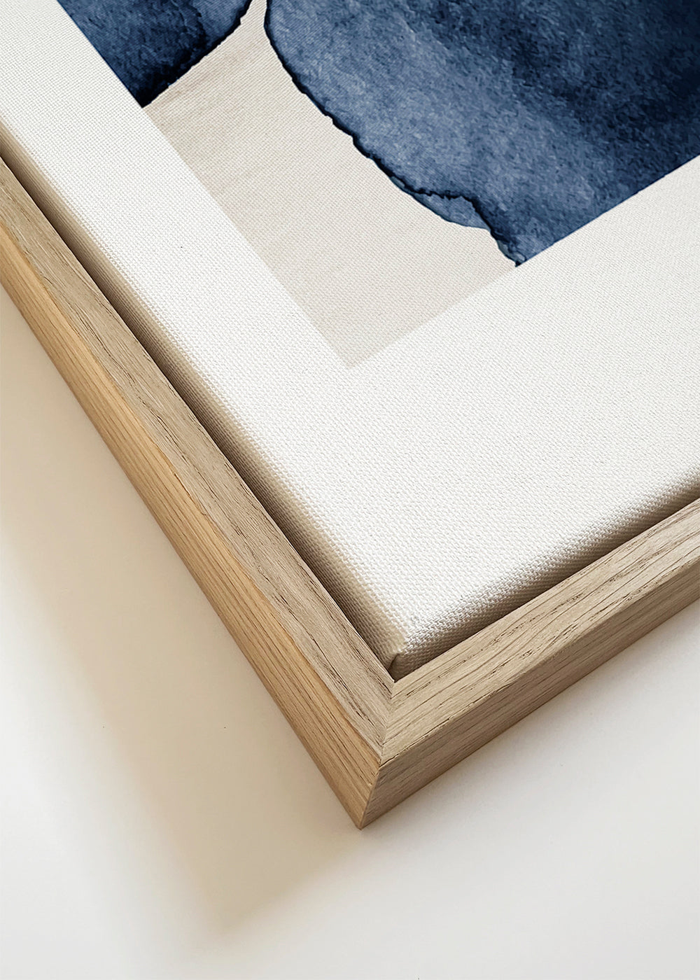 Wenn Sie die Passepartout-Option wählen, fügen wir die weiße matte Platte dem Rahmen hinzu und reduzieren das Design der Arbeit. Wählen Sie beispielsweise ein Druckformat 50x70 cm, mit eichenfarbenem Rahmen und Passepartout, reduzieren wir das Design des Druckes auf das bisherige Format (40x50cm). So passt es sich perfekt an das Innenfenster des Passepartouts an.