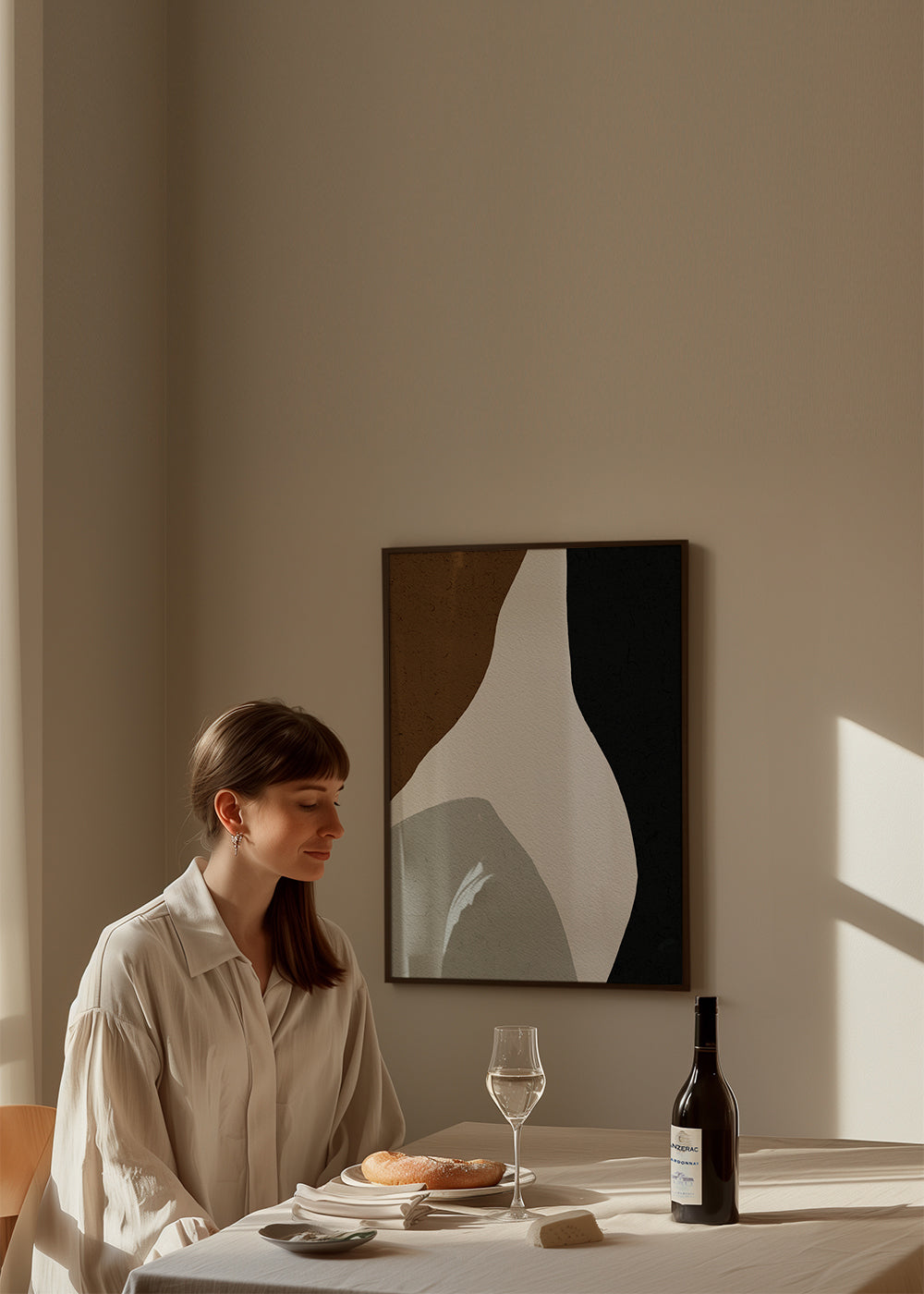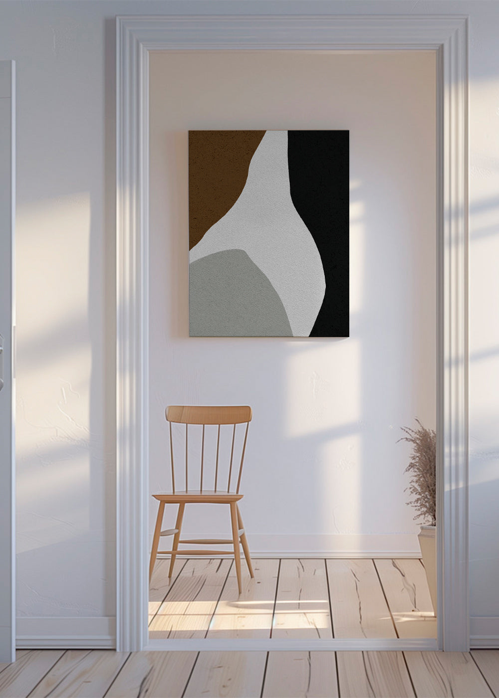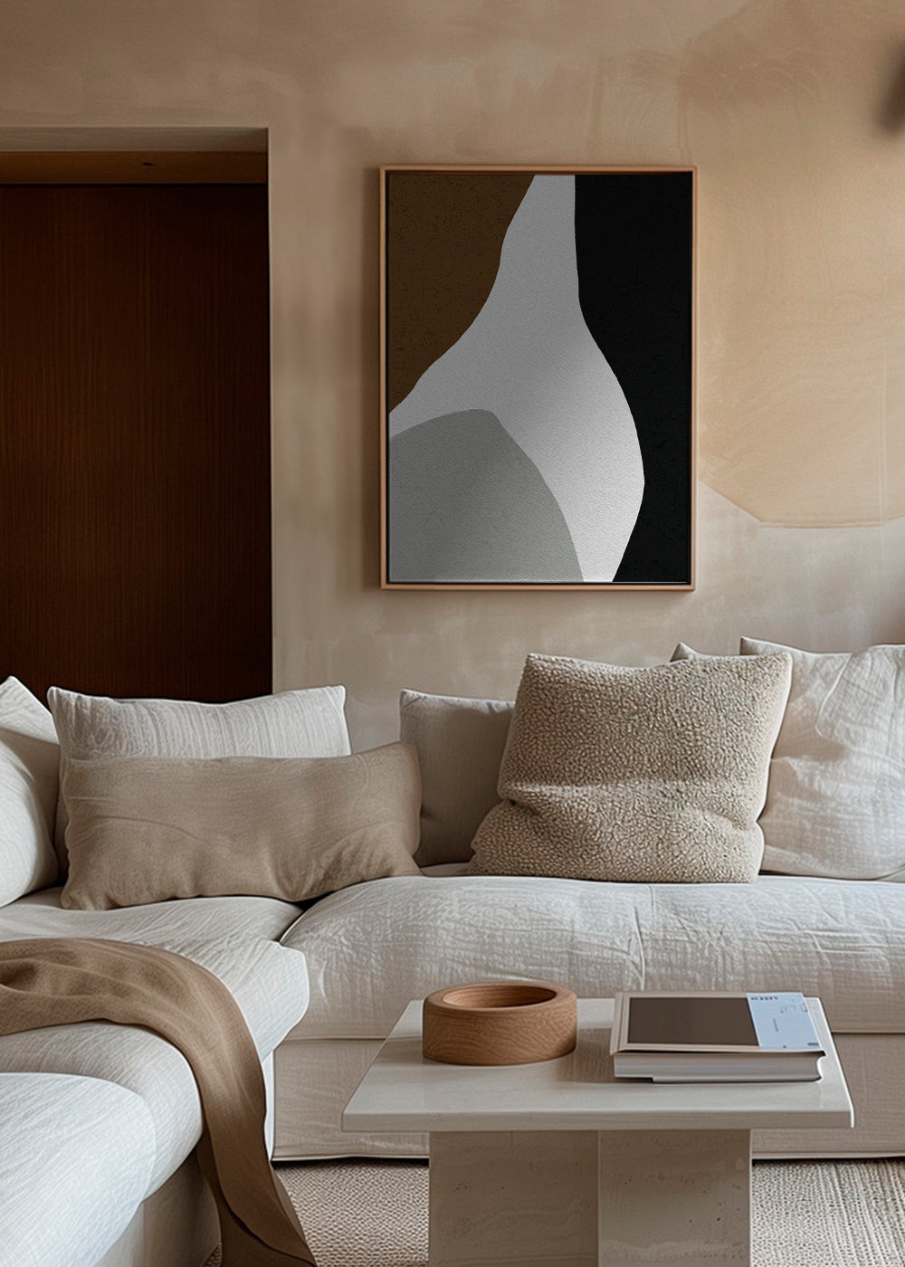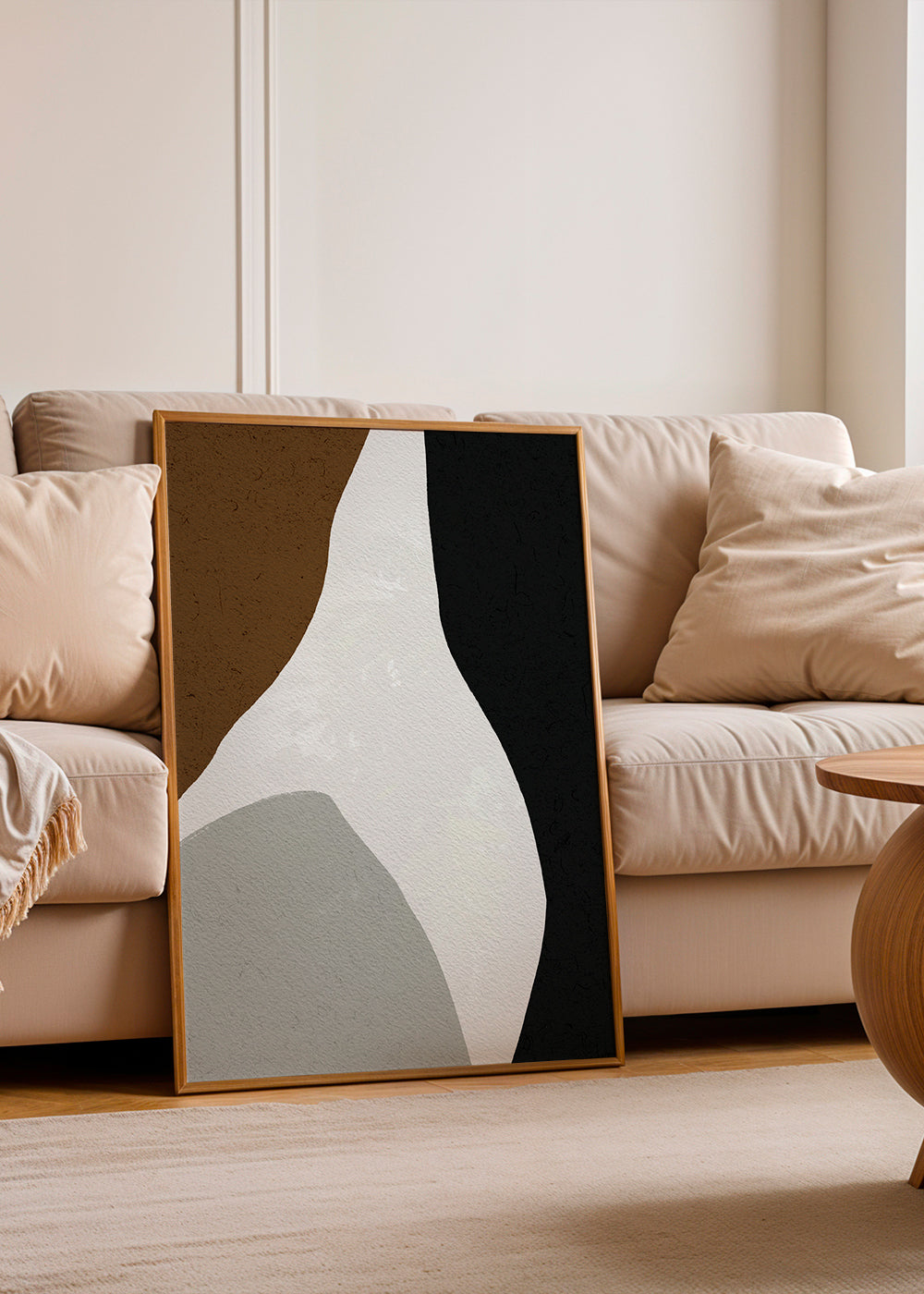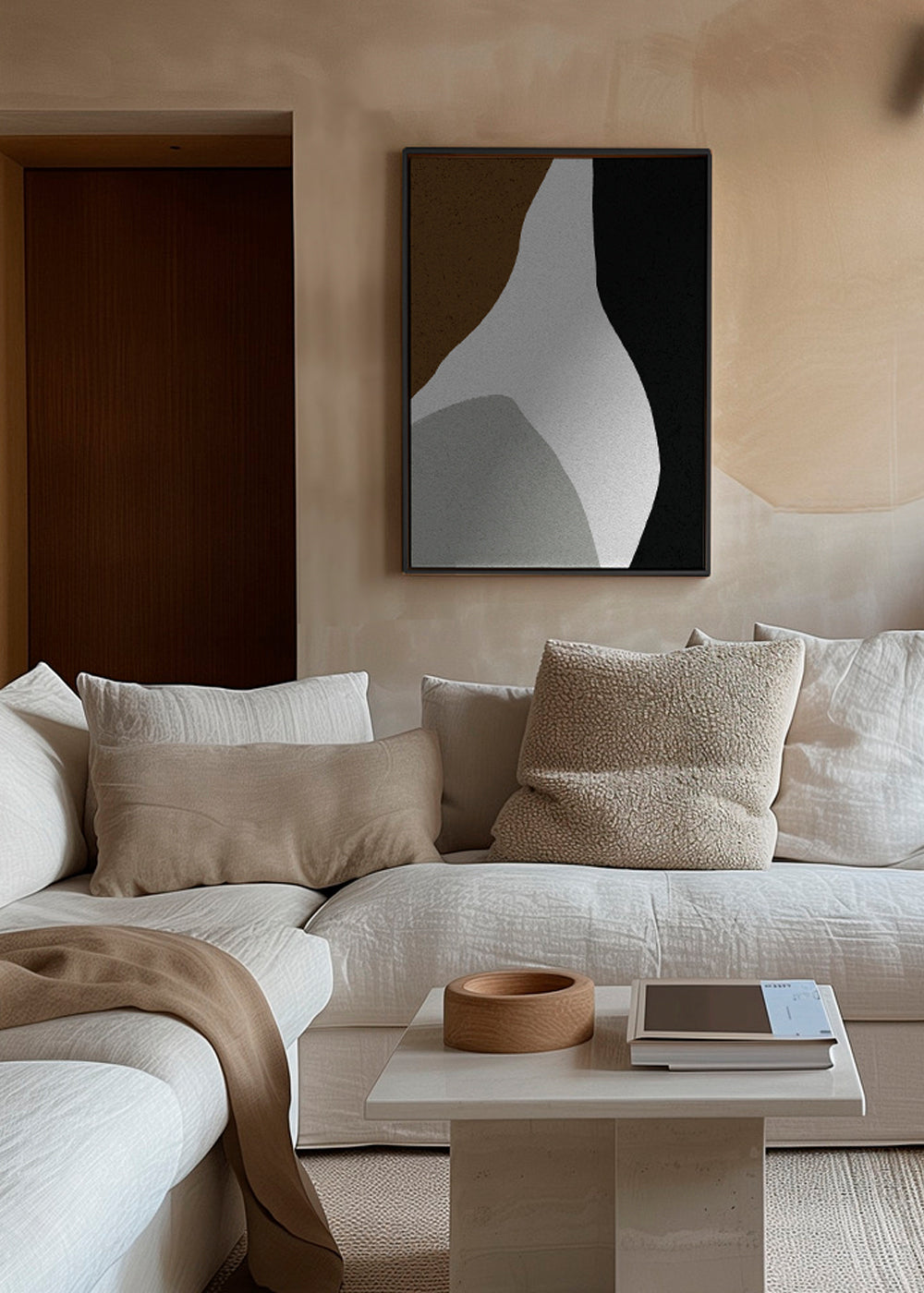 Ein Kunstwerk gehört zum Thema geometrische bilder, Originalbild von U + Me Studio, mit Farben grau, und mit Ausrichtung vertikal. Der Kunstdruck mit abstrakten Formen lässt sich hervorragend mit geometrischen Formen und abstrakter Kunst kombinieren. Verleihe deiner Inneneinrichtung einen künstlerischen Touch.